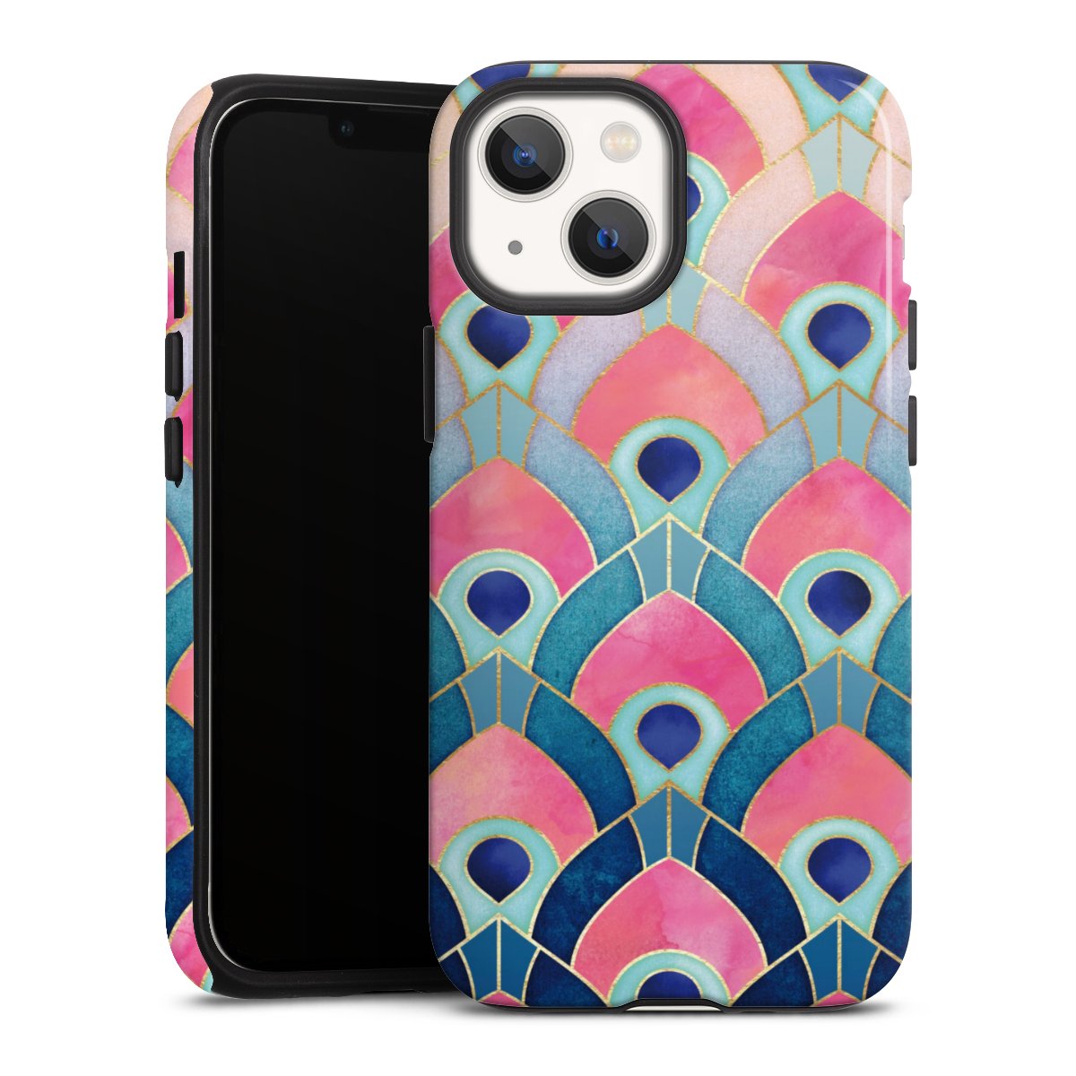 Product details Our most protective phone case combines the advantages of the Silicone and Premium Case: the flexible silicone core on the inside offers an extra shockabsorbing layer, protecting reliably against damages from dropping your phone. The longlasting, polycarbonate hard shell ensures additional stability and a brilliant print result. The surface of the 2,6 mm strong case feels smooth offering a comfortable grip. The case is available with a matt and glossy finish.