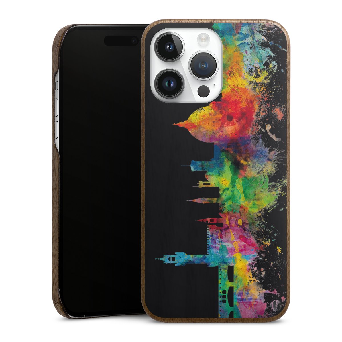 Print technology For our Wooden Slim Case we are using our advanced direct printing technology. The backside is fully printabale, the frame is left unprinted. You can order the phone case without print, printed completely or also with a partial print. Choose one of our exklusive, pre-made shop designs or let your creativity shine and create your very own unique design with your pictures, overlays and text.