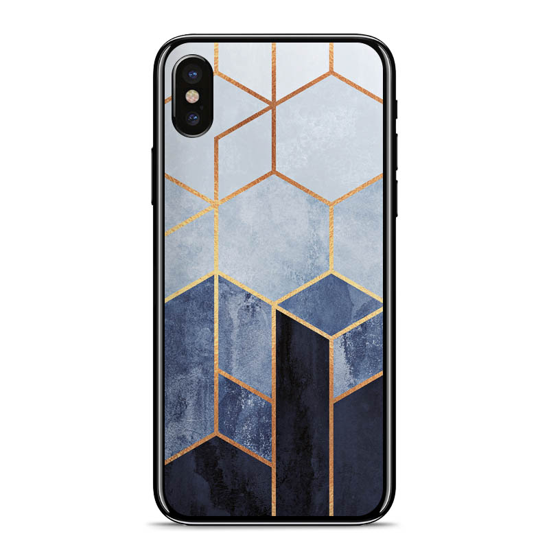 Soft Blue Hexagons Gold Print