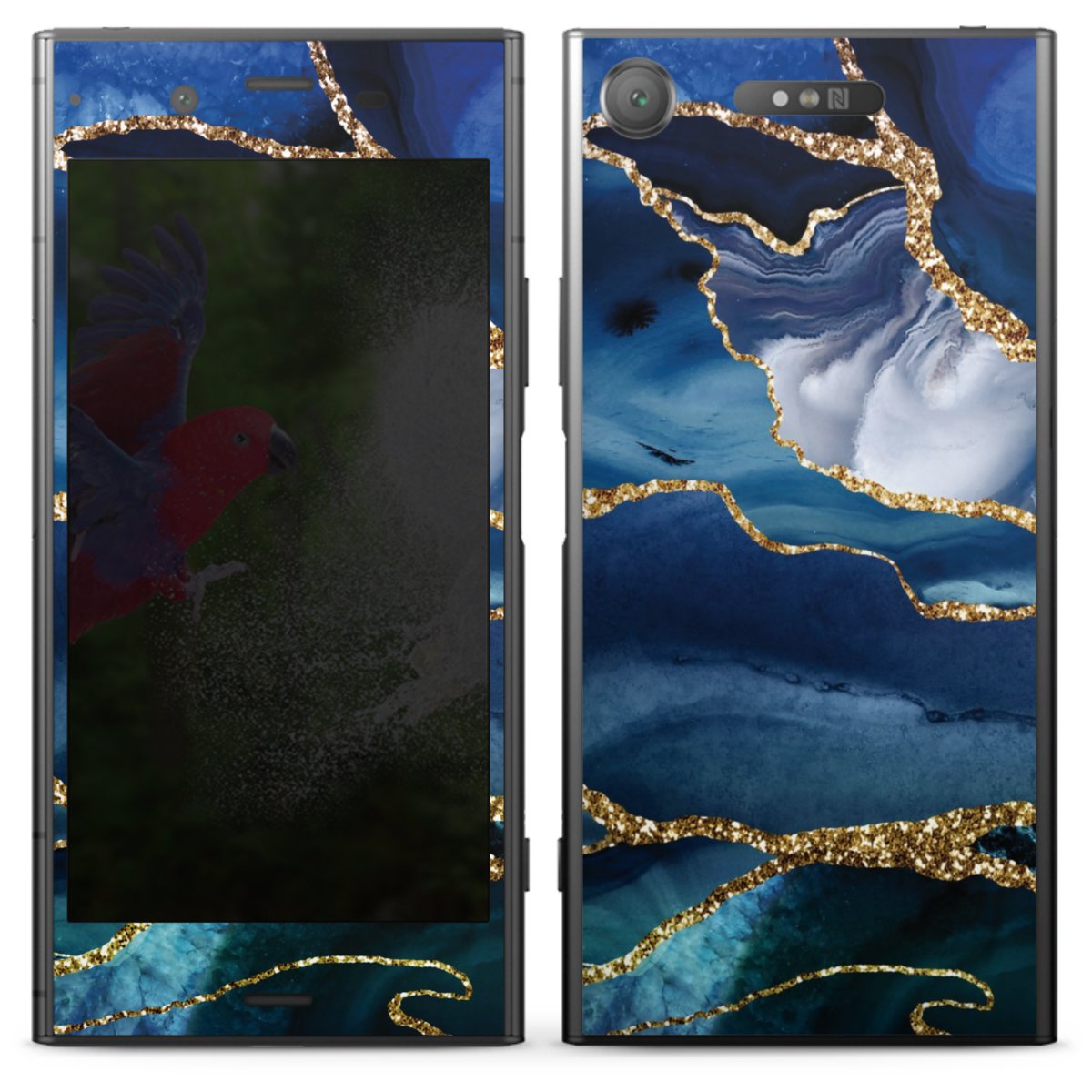Blue Marble Gold Glitter Look