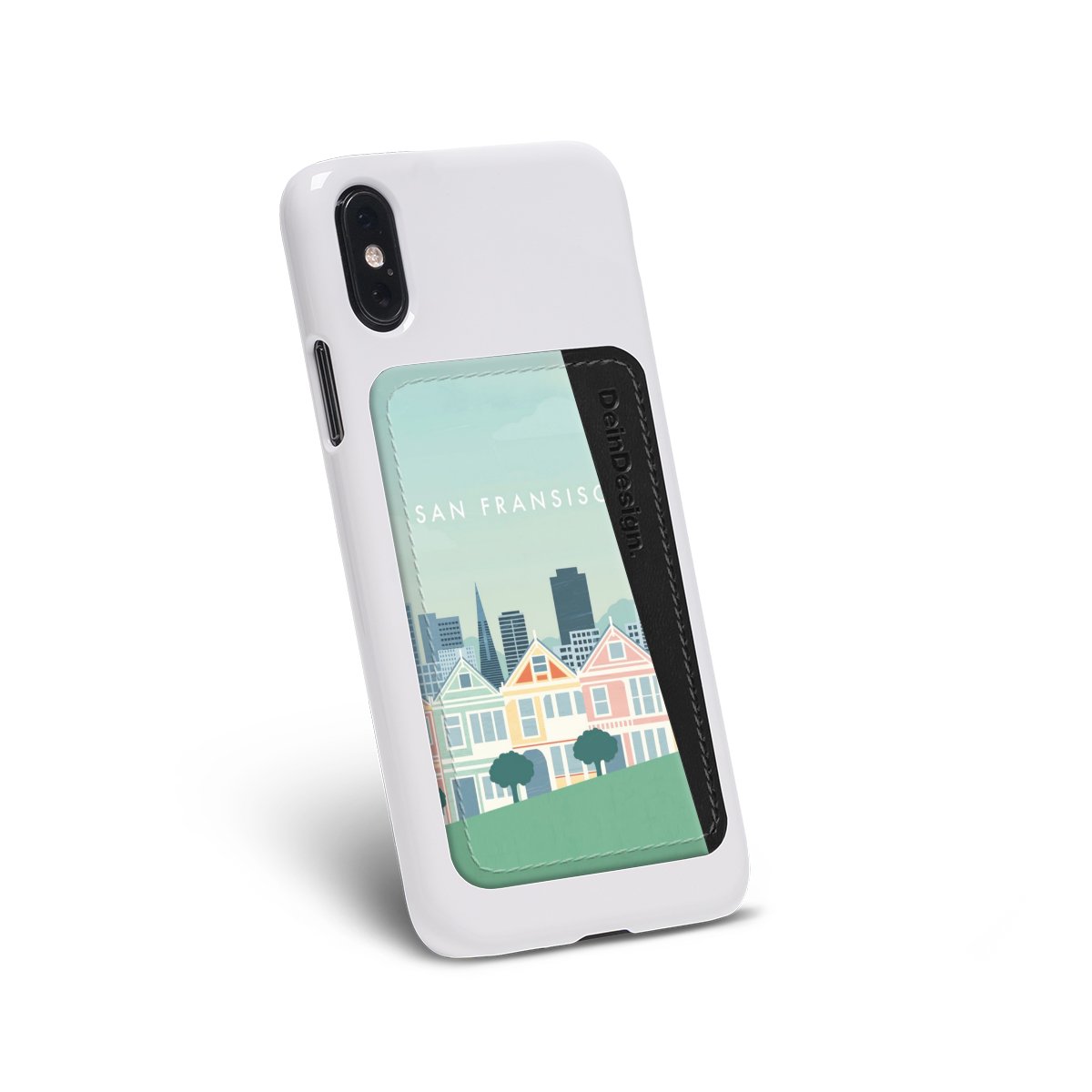 The printing area of the card holder extends from the frontside to the edge. This means there is room for your very own personal design – for example matching your phone case or customizing it with your favourite photos. We print the design for you precisely and in intense colours as soon as your order is completed.