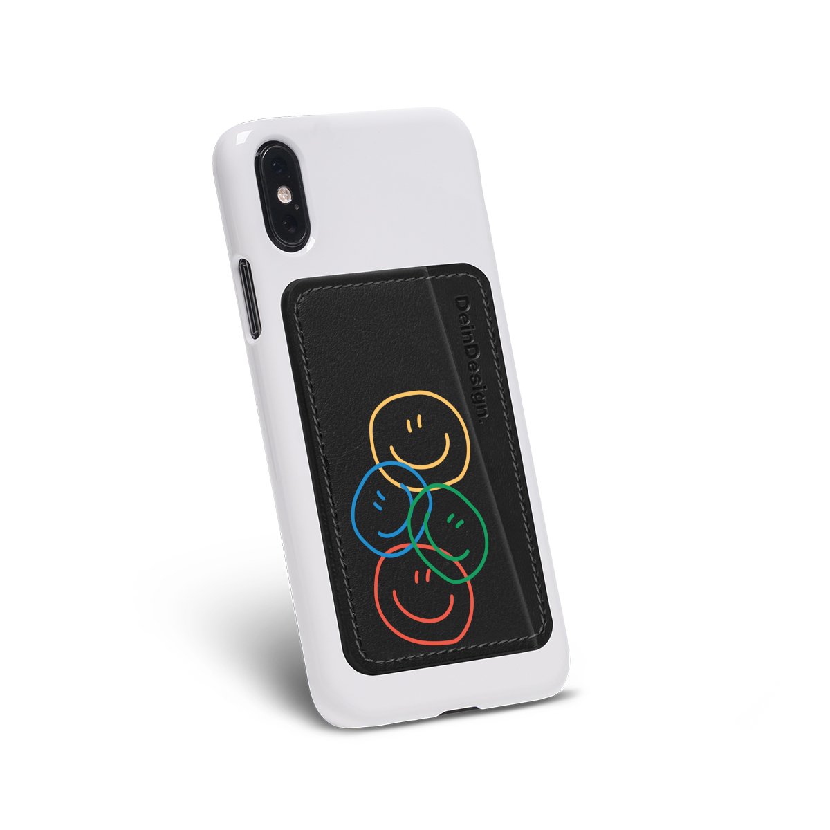 We advise to clean your phone case with a soft cloth and a mild detergent first. On the back of the card holder you will find an adhesive strip. Pull off the protective film and press the card holder firmly against the phone case – that’s it!