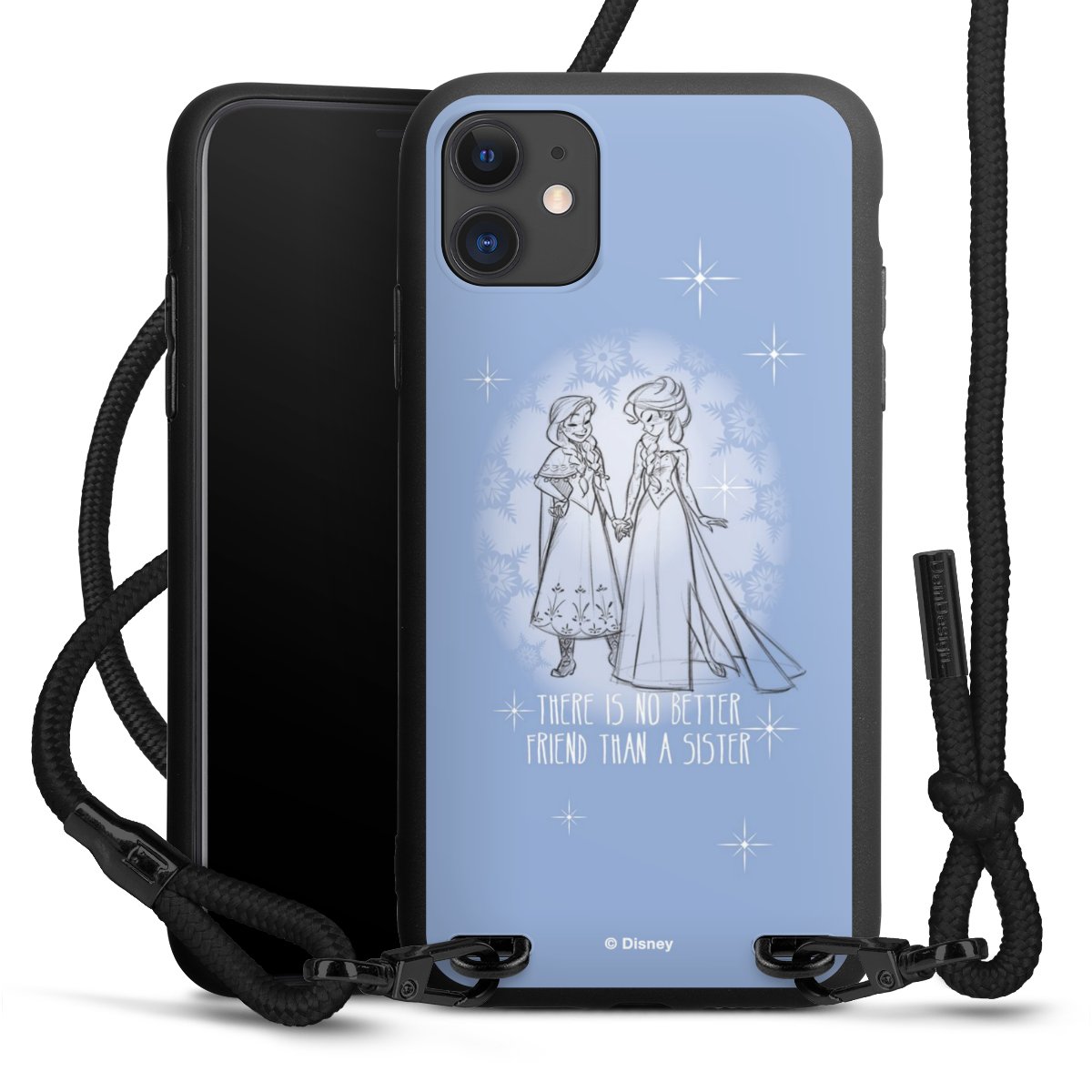 Pure Black: Phone case, fabric strap and metal details in stylish matt black.