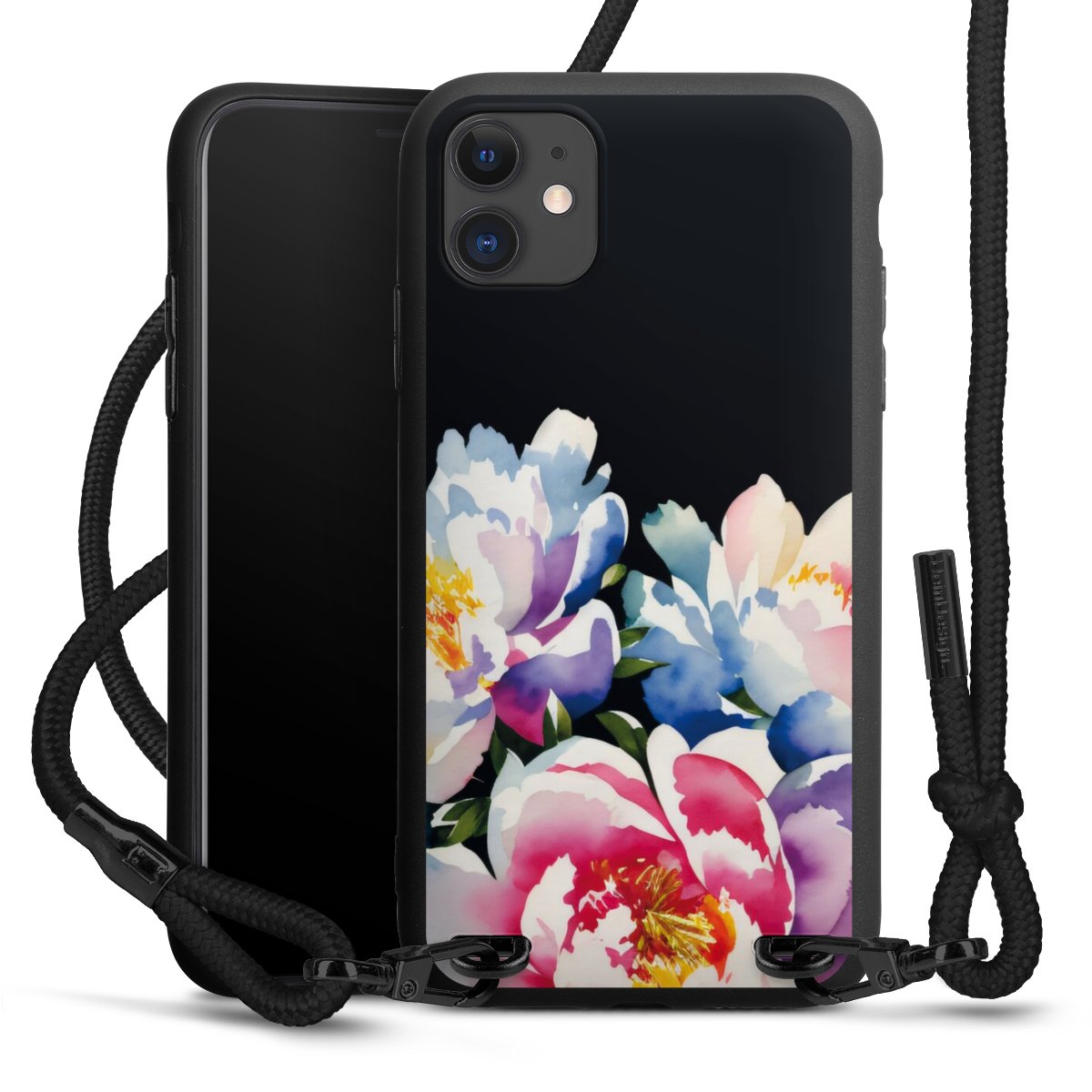 We use the solid direct print process for this phone case, which is why the print area only covers the back and the edge remains unprinted. The case to wear around your neck can be ordered unprinted, fully printed, or partially printed. For your design, either choose one of our exclusive shop motifs or get creative and create your own design, for example with photos and overlays. Design your own personal trend accessory and make an individual statement on the streets!