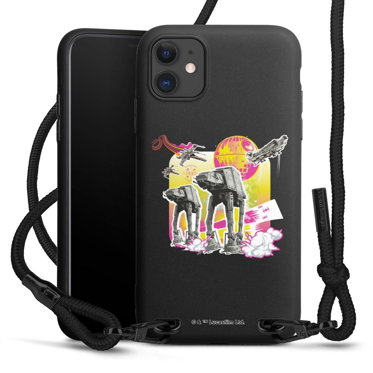 We use the solid direct print process for this phone case, which is why the print area only covers the back and the edge remains unprinted. The case to wear around your neck can be ordered unprinted, fully printed, or partially printed. For your design, either choose one of our exclusive shop motifs or get creative and create your own design, for example with photos and overlays. Design your own personal trend accessory and make an individual statement on the streets!