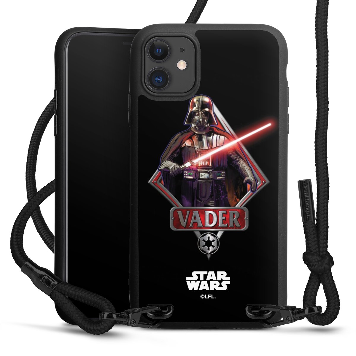 Pure Black: Phone case, fabric strap and metal details in stylish matt black.