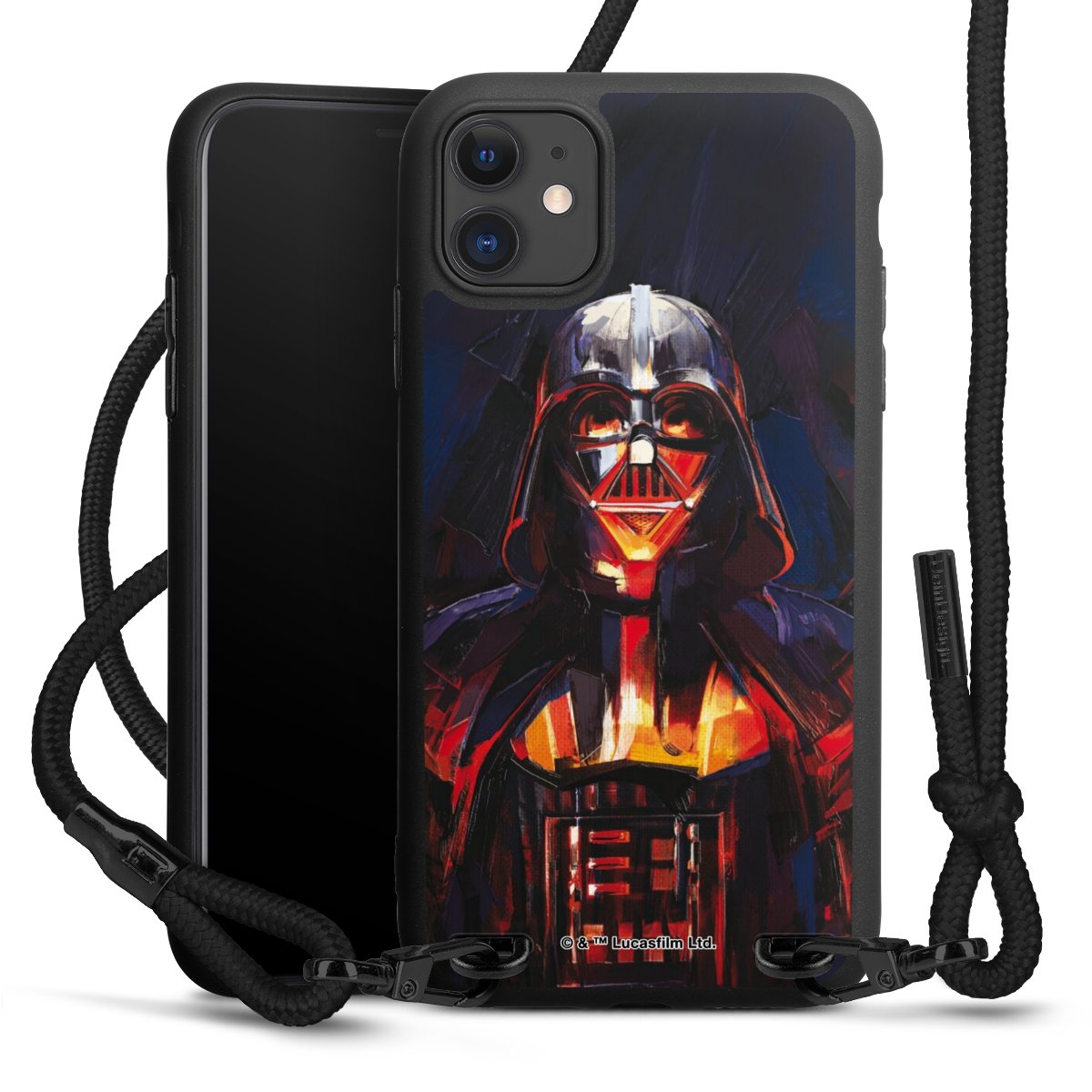 Pure Black: Phone case, fabric strap and metal details in stylish matt black.