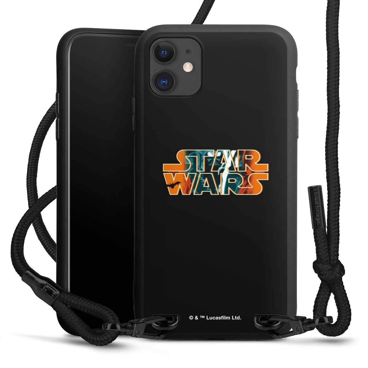 The matt black silicone case is made of flexible TPU (thermoplastic polyurethane) and offers robust protection. The durable, unbreakable material makes the cover flexible and dimensionally stable at the same time. The matte surface makes your design stand out more and is less susceptible to fingerprints and dirt. The stylish trend accessory fits comfortably in the hand and is perfectly complemented by the fabric (polyester) mobile phone strap. The braided fabric strap is approx. 1.70 metres long with a diameter of approx. 0.5 cm. Due to the special knotting technique, the length of the strap can be adjusted by simply pulling it, so that you can adapt it individually to your wishes. The practical case to wear around your neck is available with the fabric strap in black. As a little icing on the cake, we have provided the strap with a chic metal fastener in matt black. The strap is securely fastened to the case with loops made of high-quality genuine leather and press studs. The ends of the fabric strap are covered with metallic end caps and thus protected from fraying.