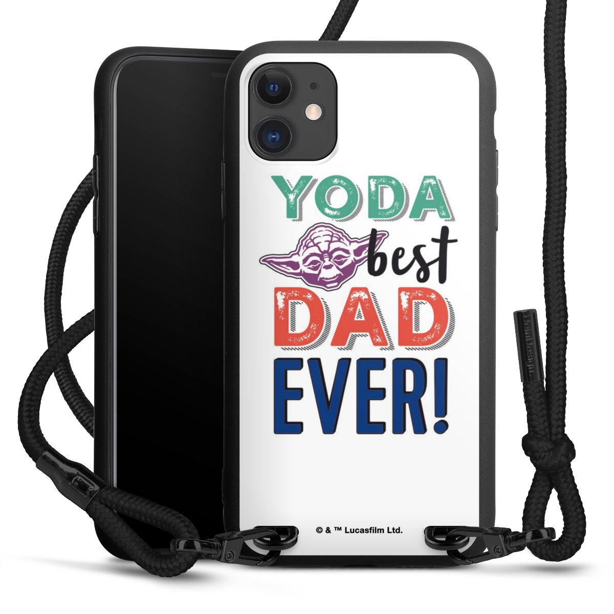 The matt black silicone case is made of flexible TPU (thermoplastic polyurethane) and offers robust protection. The durable, unbreakable material makes the cover flexible and dimensionally stable at the same time. The matte surface makes your design stand out more and is less susceptible to fingerprints and dirt. The stylish trend accessory fits comfortably in the hand and is perfectly complemented by the fabric (polyester) mobile phone strap. The braided fabric strap is approx. 1.70 metres long with a diameter of approx. 0.5 cm. Due to the special knotting technique, the length of the strap can be adjusted by simply pulling it, so that you can adapt it individually to your wishes. The practical case to wear around your neck is available with the fabric strap in black. As a little icing on the cake, we have provided the strap with a chic metal fastener in matt black. The strap is securely fastened to the case with loops made of high-quality genuine leather and press studs. The ends of the fabric strap are covered with metallic end caps and thus protected from fraying.