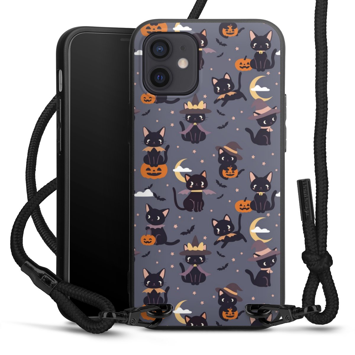 Pure Black: Phone case, fabric strap and metal details in stylish matt black.
