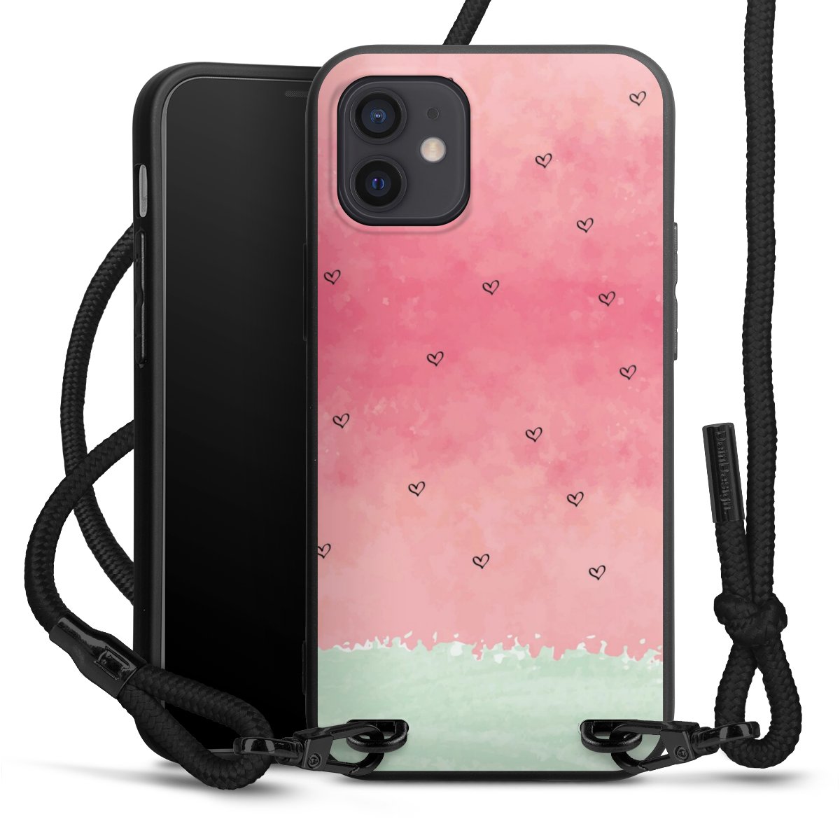 We use the solid direct print process for this phone case, which is why the print area only covers the back and the edge remains unprinted. The case to wear around your neck can be ordered unprinted, fully printed, or partially printed. For your design, either choose one of our exclusive shop motifs or get creative and create your own design, for example with photos and overlays. Design your own personal trend accessory and make an individual statement on the streets!