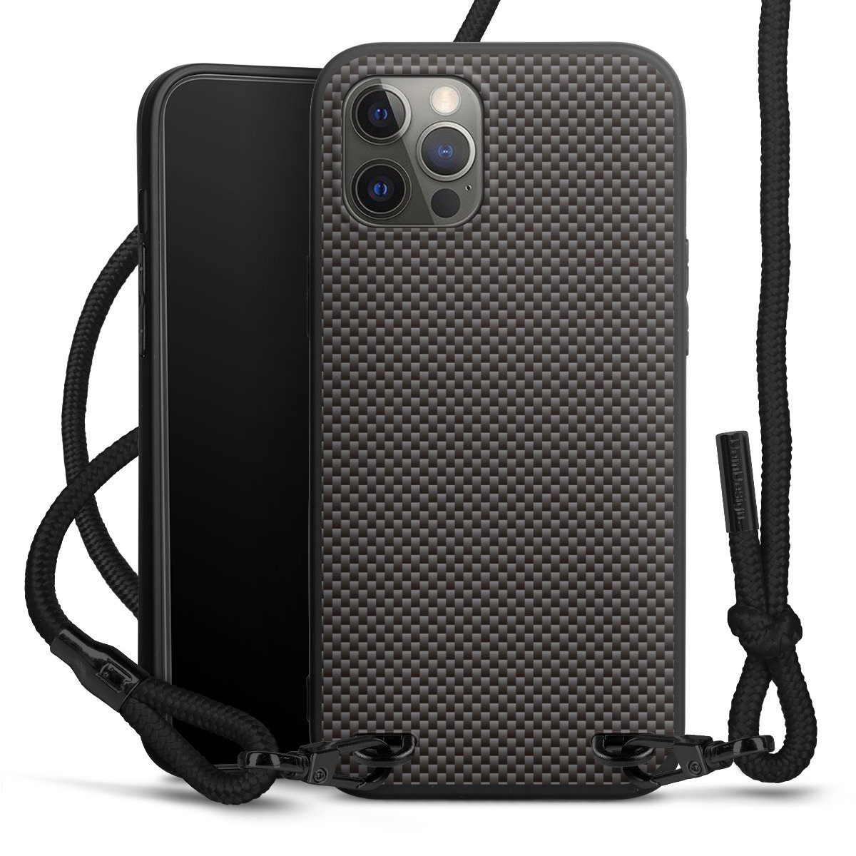 Pure Black: Phone case, fabric strap and metal details in stylish matt black.
