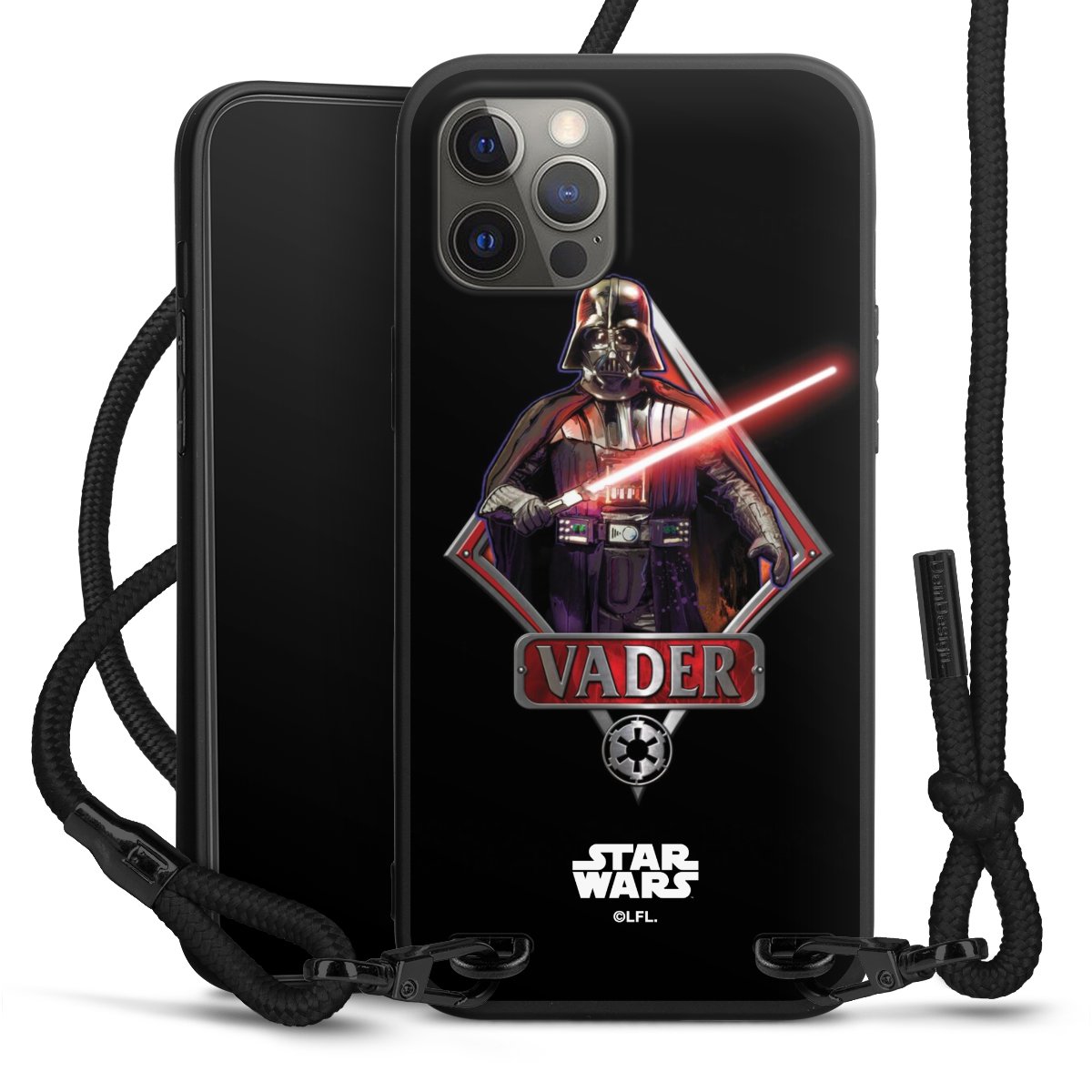 Pure Black: Phone case, fabric strap and metal details in stylish matt black.
