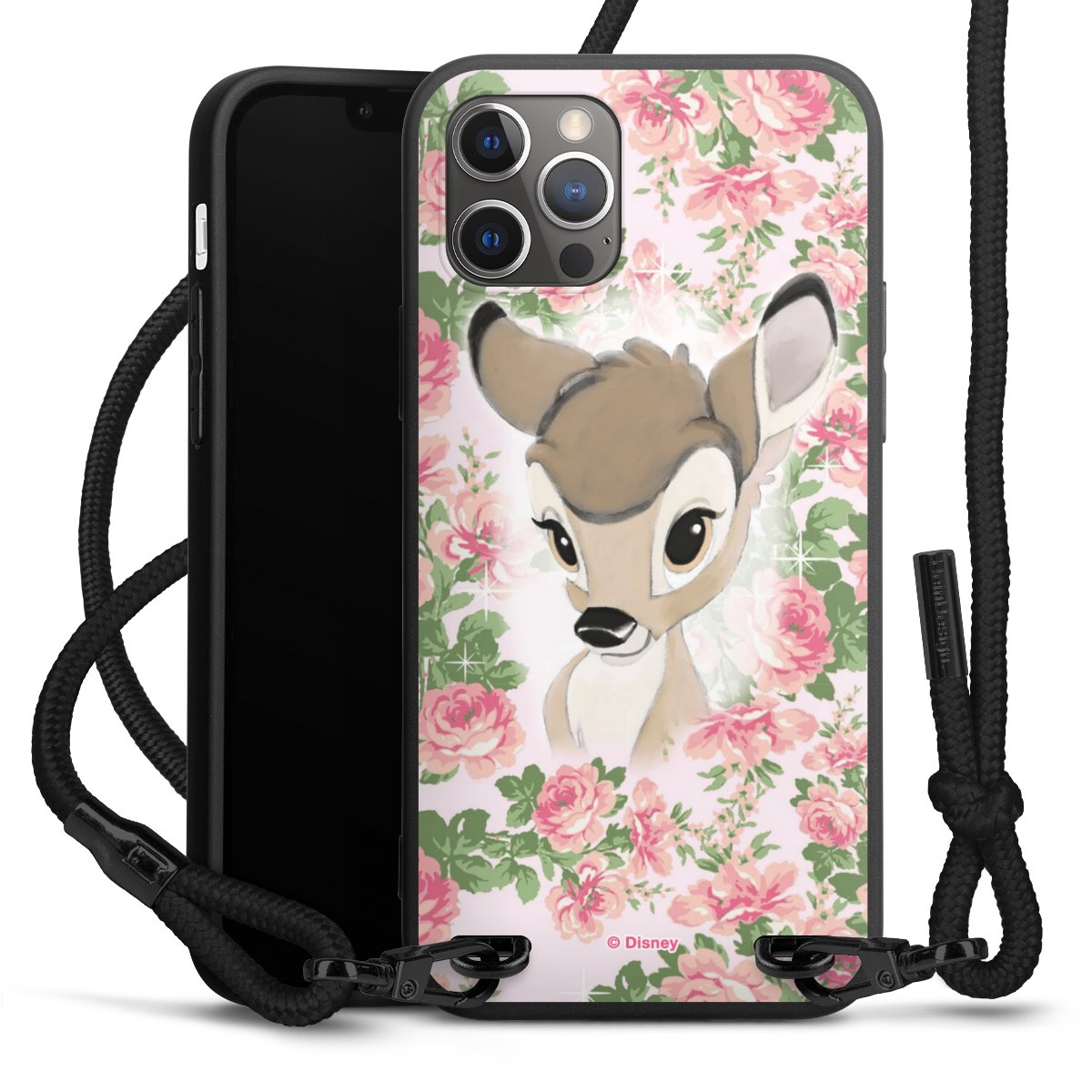The matt black silicone case is made of flexible TPU (thermoplastic polyurethane) and offers robust protection. The durable, unbreakable material makes the cover flexible and dimensionally stable at the same time. The matte surface makes your design stand out more and is less susceptible to fingerprints and dirt. The stylish trend accessory fits comfortably in the hand and is perfectly complemented by the fabric (polyester) mobile phone strap. The braided fabric strap is approx. 1.70 metres long with a diameter of approx. 0.5 cm. Due to the special knotting technique, the length of the strap can be adjusted by simply pulling it, so that you can adapt it individually to your wishes. The practical case to wear around your neck is available with the fabric strap in black. As a little icing on the cake, we have provided the strap with a chic metal fastener in matt black. The strap is securely fastened to the case with loops made of high-quality genuine leather and press studs. The ends of the fabric strap are covered with metallic end caps and thus protected from fraying.