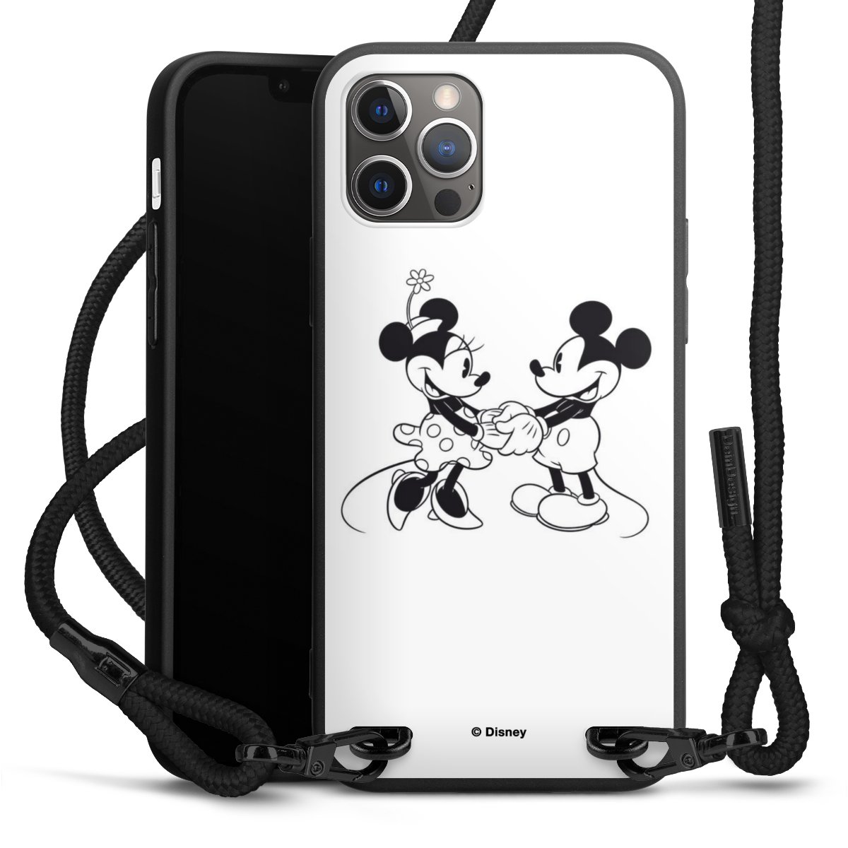 The matt black silicone case is made of flexible TPU (thermoplastic polyurethane) and offers robust protection. The durable, unbreakable material makes the cover flexible and dimensionally stable at the same time. The matte surface makes your design stand out more and is less susceptible to fingerprints and dirt. The stylish trend accessory fits comfortably in the hand and is perfectly complemented by the fabric (polyester) mobile phone strap. The braided fabric strap is approx. 1.70 metres long with a diameter of approx. 0.5 cm. Due to the special knotting technique, the length of the strap can be adjusted by simply pulling it, so that you can adapt it individually to your wishes. The practical case to wear around your neck is available with the fabric strap in black. As a little icing on the cake, we have provided the strap with a chic metal fastener in matt black. The strap is securely fastened to the case with loops made of high-quality genuine leather and press studs. The ends of the fabric strap are covered with metallic end caps and thus protected from fraying.