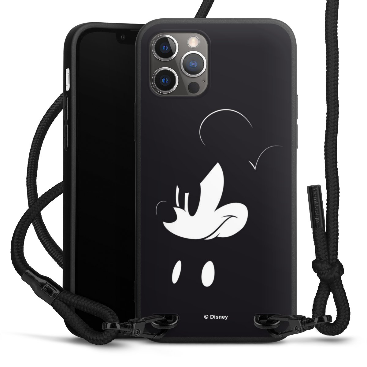The matt black silicone case is made of flexible TPU (thermoplastic polyurethane) and offers robust protection. The durable, unbreakable material makes the cover flexible and dimensionally stable at the same time. The matte surface makes your design stand out more and is less susceptible to fingerprints and dirt. The stylish trend accessory fits comfortably in the hand and is perfectly complemented by the fabric (polyester) mobile phone strap. The braided fabric strap is approx. 1.70 metres long with a diameter of approx. 0.5 cm. Due to the special knotting technique, the length of the strap can be adjusted by simply pulling it, so that you can adapt it individually to your wishes. The practical case to wear around your neck is available with the fabric strap in black. As a little icing on the cake, we have provided the strap with a chic metal fastener in matt black. The strap is securely fastened to the case with loops made of high-quality genuine leather and press studs. The ends of the fabric strap are covered with metallic end caps and thus protected from fraying.