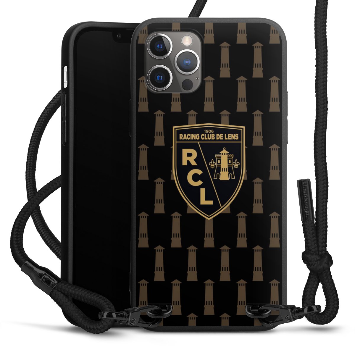 Pure Black: Phone case, fabric strap and metal details in stylish matt black.
