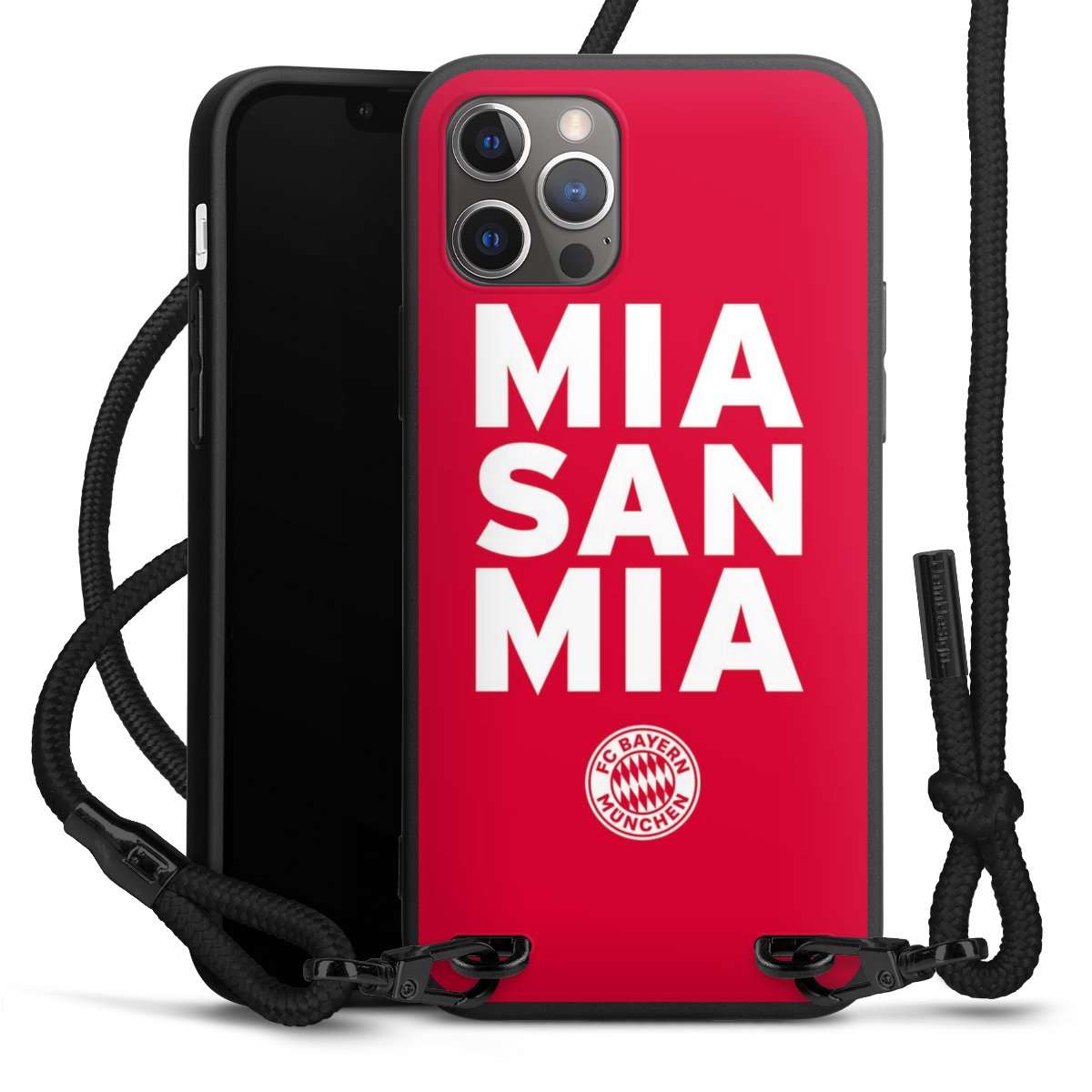Pure Black: Phone case, fabric strap and metal details in stylish matt black.