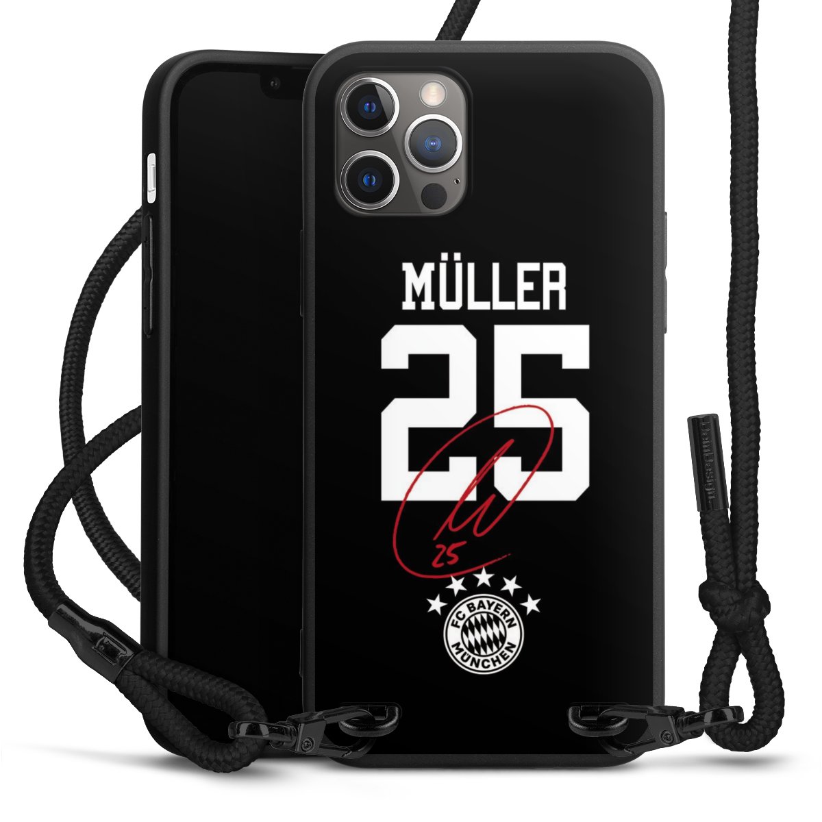 Pure Black: Phone case, fabric strap and metal details in stylish matt black.