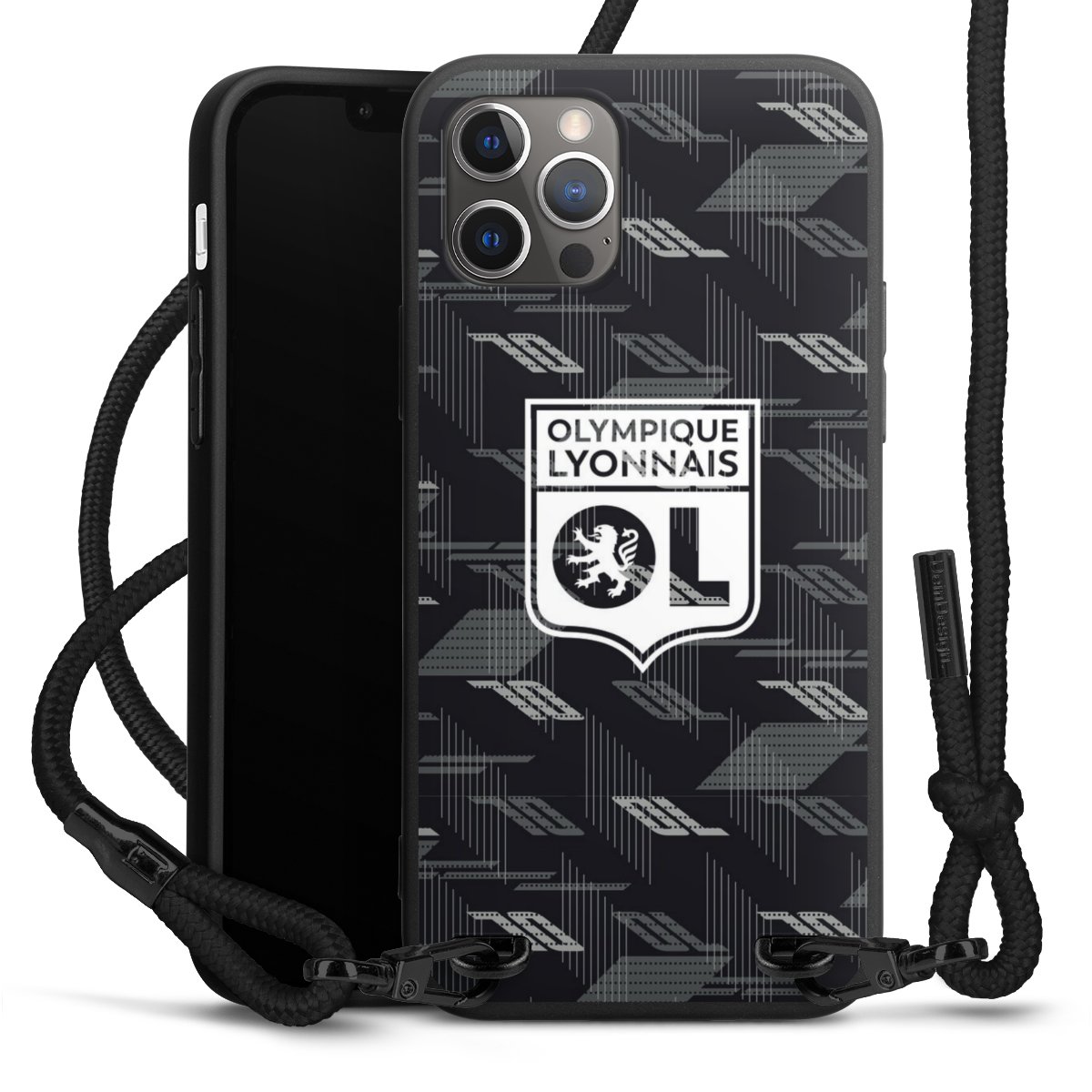 Pure Black: Phone case, fabric strap and metal details in stylish matt black.