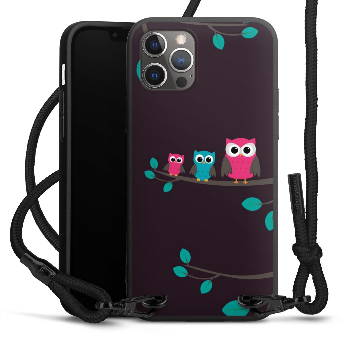 The matt black silicone case is made of flexible TPU (thermoplastic polyurethane) and offers robust protection. The durable, unbreakable material makes the cover flexible and dimensionally stable at the same time. The matte surface makes your design stand out more and is less susceptible to fingerprints and dirt. The stylish trend accessory fits comfortably in the hand and is perfectly complemented by the fabric (polyester) mobile phone strap. The braided fabric strap is approx. 1.70 metres long with a diameter of approx. 0.5 cm. Due to the special knotting technique, the length of the strap can be adjusted by simply pulling it, so that you can adapt it individually to your wishes. The practical case to wear around your neck is available with the fabric strap in black. As a little icing on the cake, we have provided the strap with a chic metal fastener in matt black. The strap is securely fastened to the case with loops made of high-quality genuine leather and press studs. The ends of the fabric strap are covered with metallic end caps and thus protected from fraying.