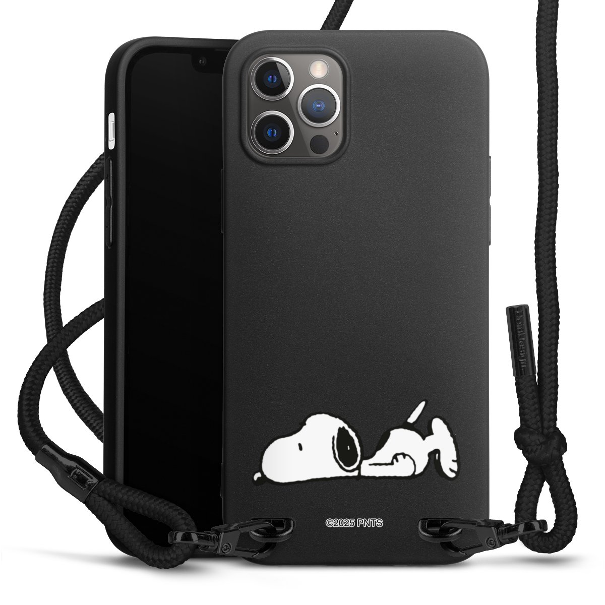 The matt black silicone case is made of flexible TPU (thermoplastic polyurethane) and offers robust protection. The durable, unbreakable material makes the cover flexible and dimensionally stable at the same time. The matte surface makes your design stand out more and is less susceptible to fingerprints and dirt. The stylish trend accessory fits comfortably in the hand and is perfectly complemented by the fabric (polyester) mobile phone strap. The braided fabric strap is approx. 1.70 metres long with a diameter of approx. 0.5 cm. Due to the special knotting technique, the length of the strap can be adjusted by simply pulling it, so that you can adapt it individually to your wishes. The practical case to wear around your neck is available with the fabric strap in black. As a little icing on the cake, we have provided the strap with a chic metal fastener in matt black. The strap is securely fastened to the case with loops made of high-quality genuine leather and press studs. The ends of the fabric strap are covered with metallic end caps and thus protected from fraying.