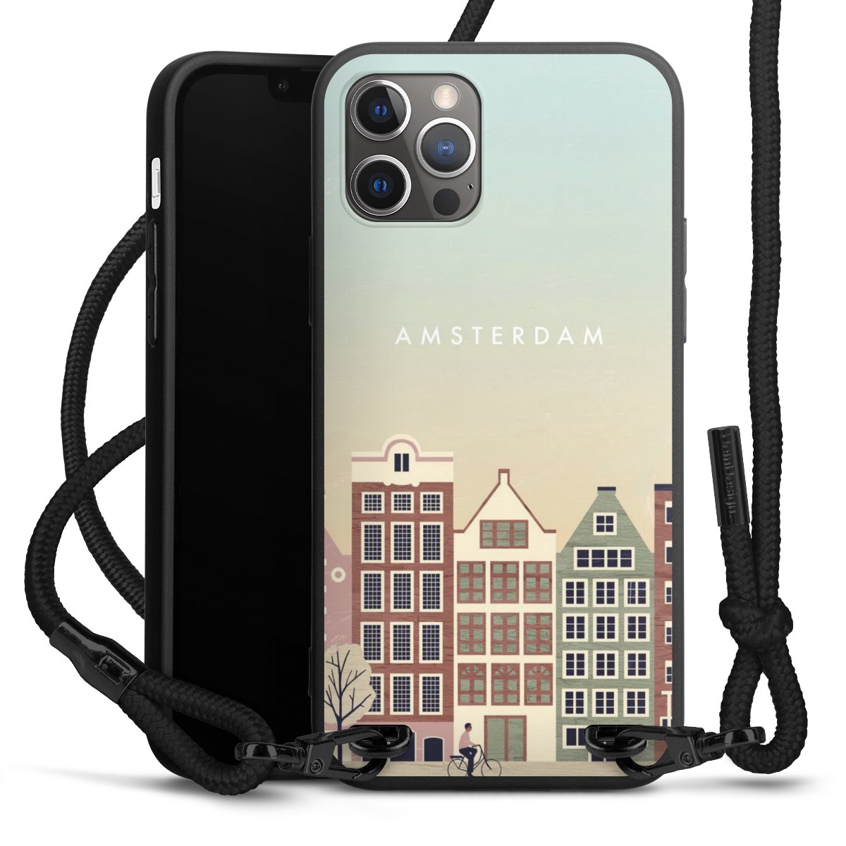 We use the solid direct print process for this phone case, which is why the print area only covers the back and the edge remains unprinted. The case to wear around your neck can be ordered unprinted, fully printed, or partially printed. For your design, either choose one of our exclusive shop motifs or get creative and create your own design, for example with photos and overlays. Design your own personal trend accessory and make an individual statement on the streets!