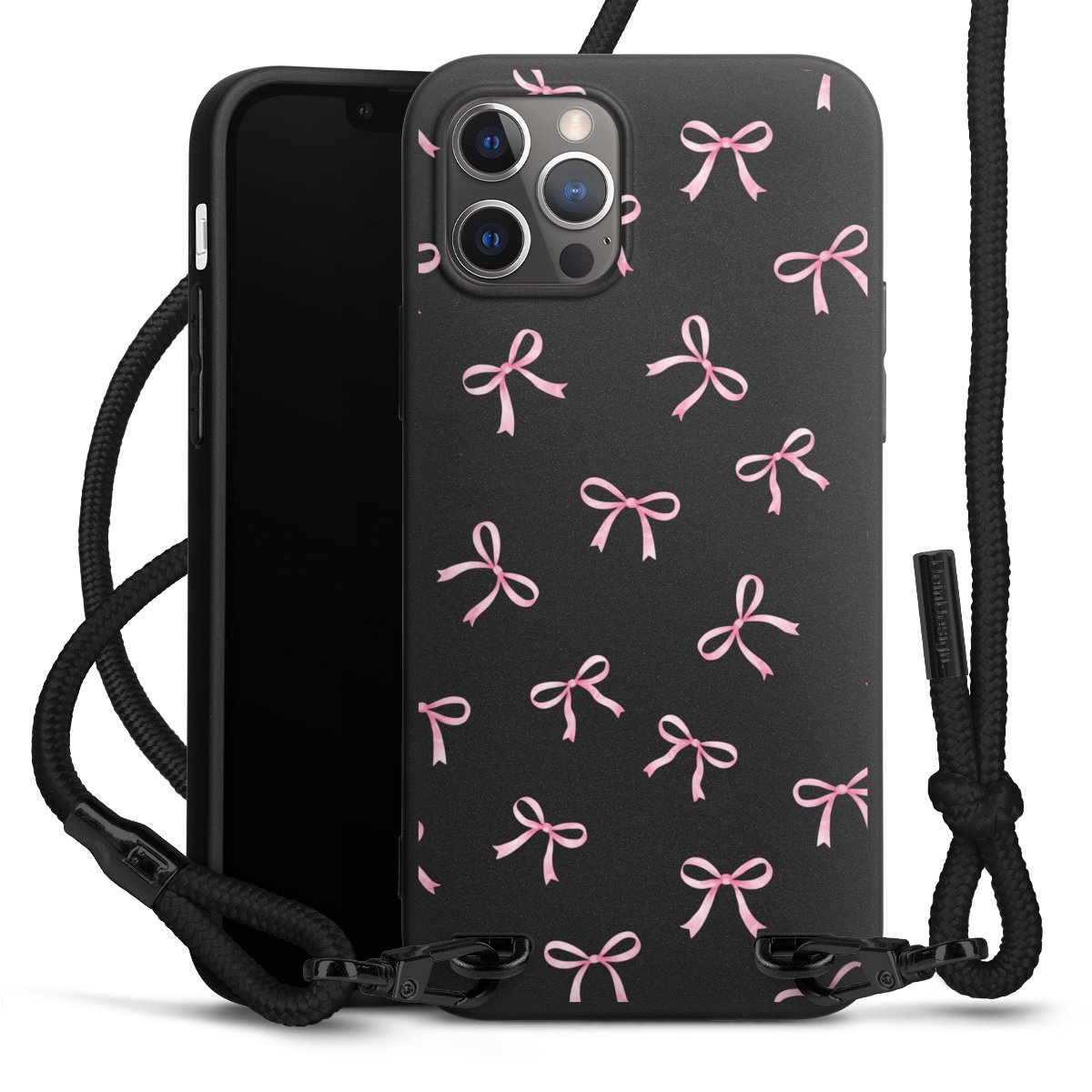 Pure Black: Phone case, fabric strap and metal details in stylish matt black.
