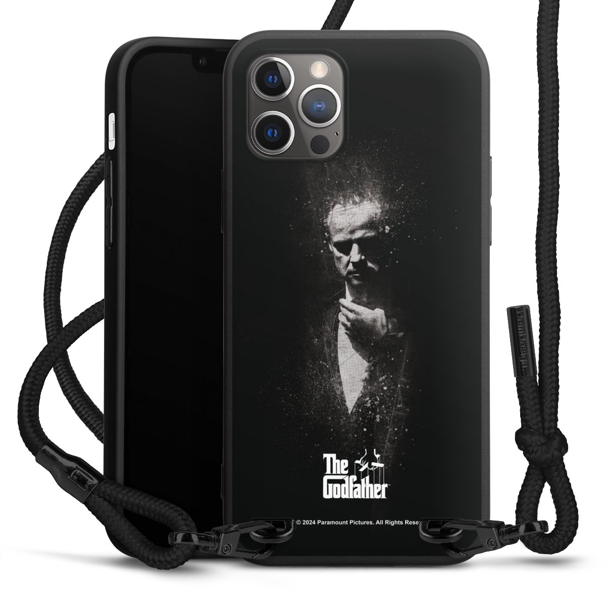Pure Black: Phone case, fabric strap and metal details in stylish matt black.