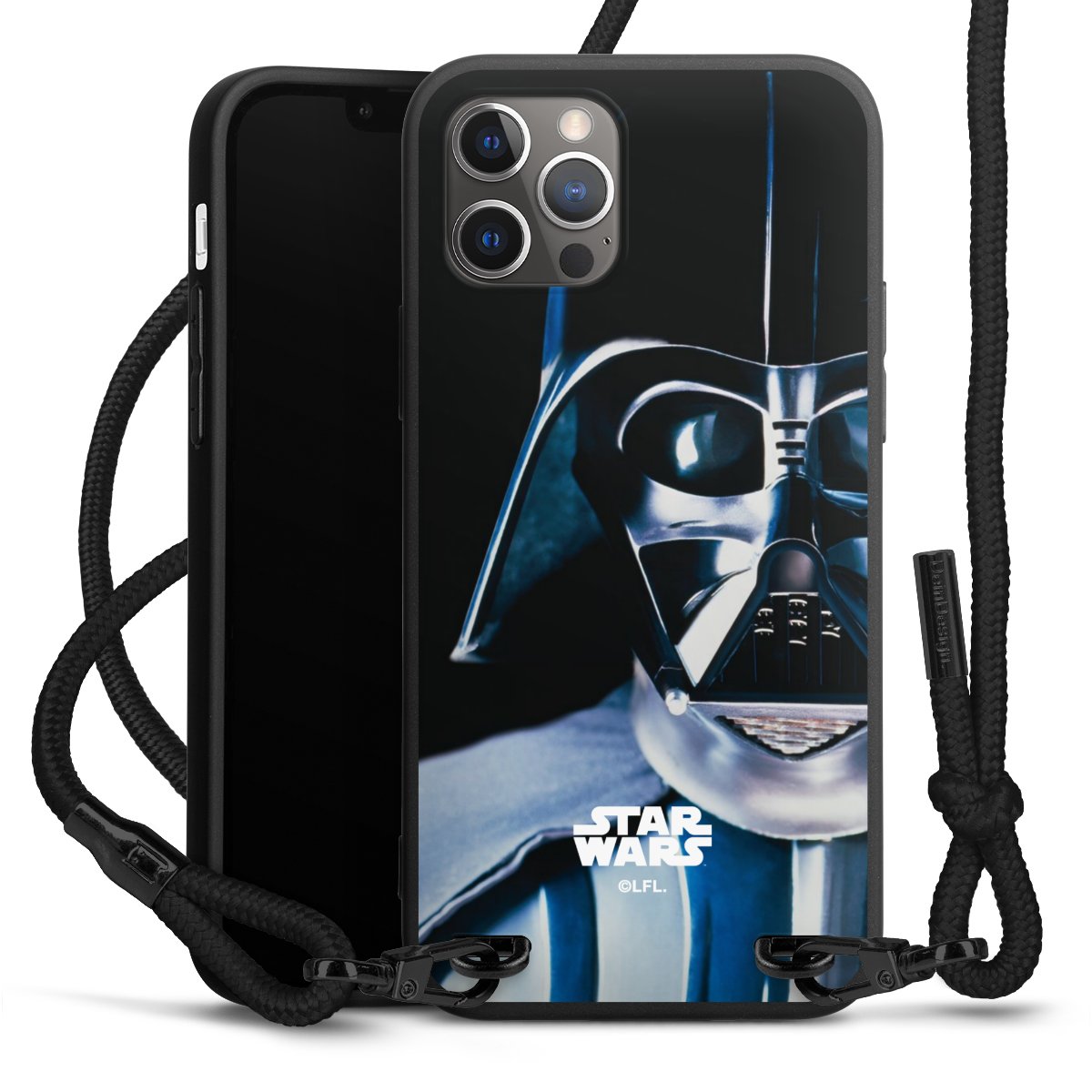 Pure Black: Phone case, fabric strap and metal details in stylish matt black.