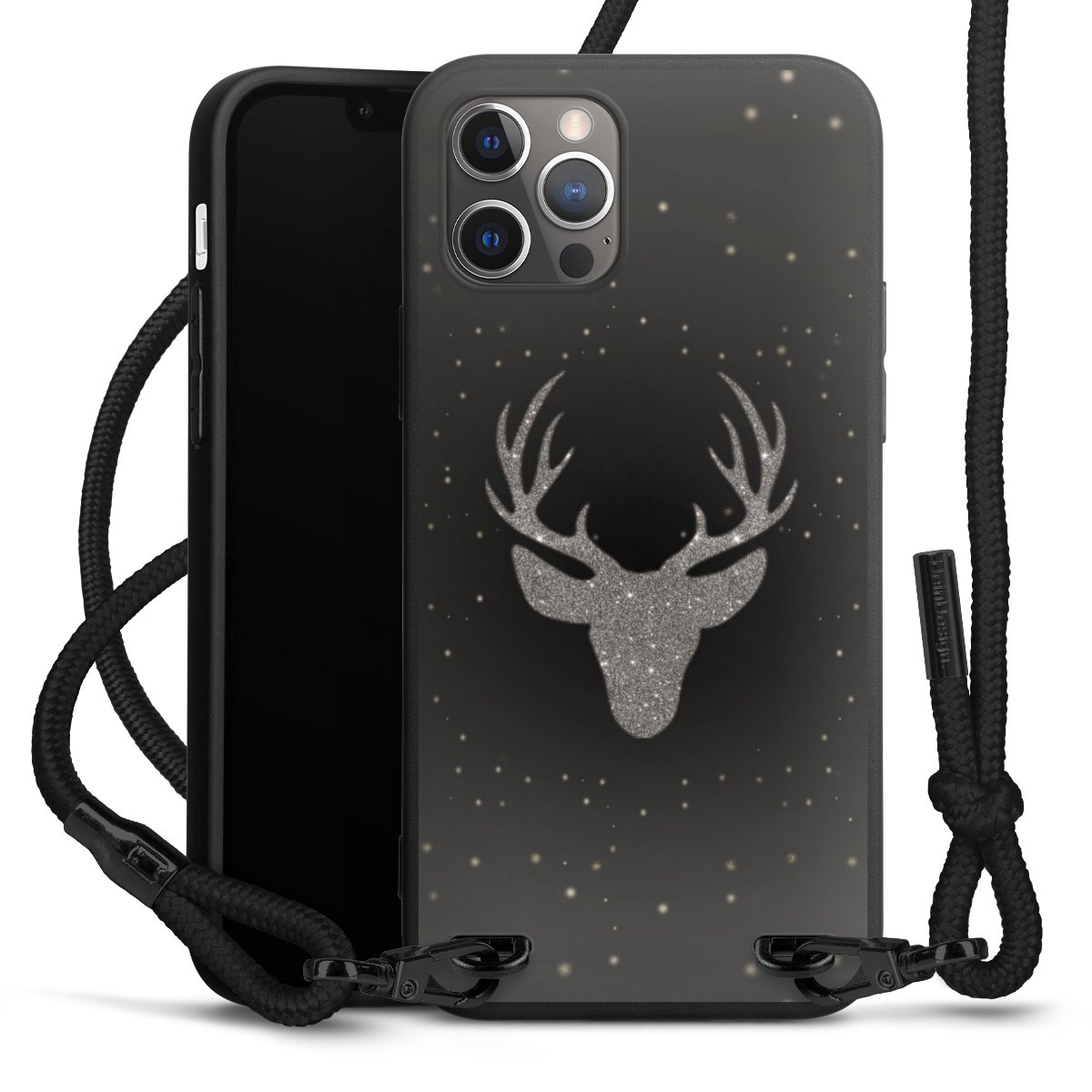 The matt black silicone case is made of flexible TPU (thermoplastic polyurethane) and offers robust protection. The durable, unbreakable material makes the cover flexible and dimensionally stable at the same time. The matte surface makes your design stand out more and is less susceptible to fingerprints and dirt. The stylish trend accessory fits comfortably in the hand and is perfectly complemented by the fabric (polyester) mobile phone strap. The braided fabric strap is approx. 1.70 metres long with a diameter of approx. 0.5 cm. Due to the special knotting technique, the length of the strap can be adjusted by simply pulling it, so that you can adapt it individually to your wishes. The practical case to wear around your neck is available with the fabric strap in black. As a little icing on the cake, we have provided the strap with a chic metal fastener in matt black. The strap is securely fastened to the case with loops made of high-quality genuine leather and press studs. The ends of the fabric strap are covered with metallic end caps and thus protected from fraying.