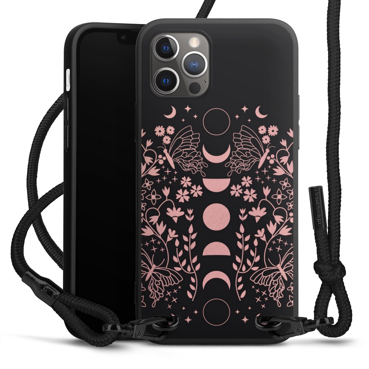 Pure Black: Phone case, fabric strap and metal details in stylish matt black.