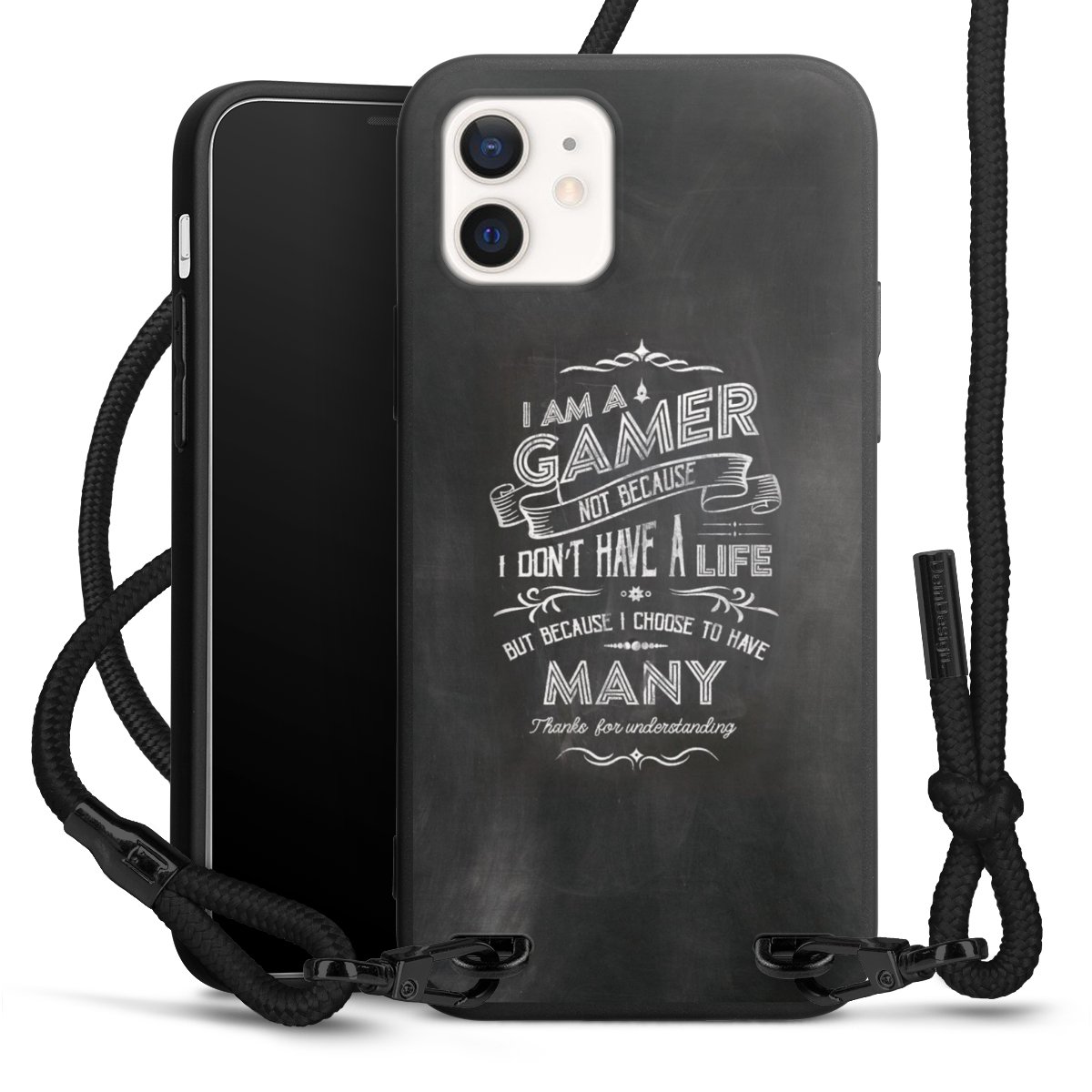 We use the solid direct print process for this phone case, which is why the print area only covers the back and the edge remains unprinted. The case to wear around your neck can be ordered unprinted, fully printed, or partially printed. For your design, either choose one of our exclusive shop motifs or get creative and create your own design, for example with photos and overlays. Design your own personal trend accessory and make an individual statement on the streets!