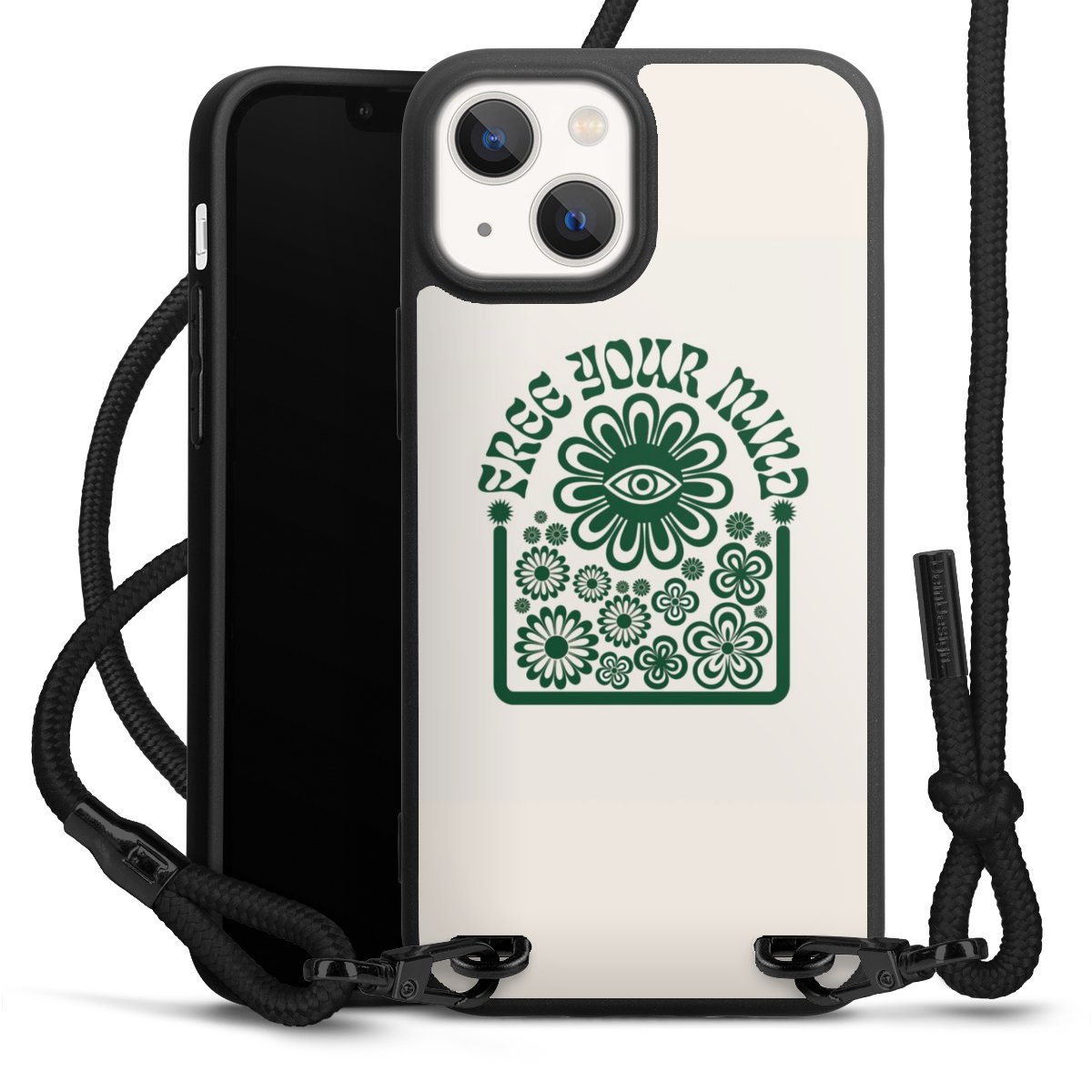 We use the solid direct print process for this phone case, which is why the print area only covers the back and the edge remains unprinted. The case to wear around your neck can be ordered unprinted, fully printed, or partially printed. For your design, either choose one of our exclusive shop motifs or get creative and create your own design, for example with photos and overlays. Design your own personal trend accessory and make an individual statement on the streets!