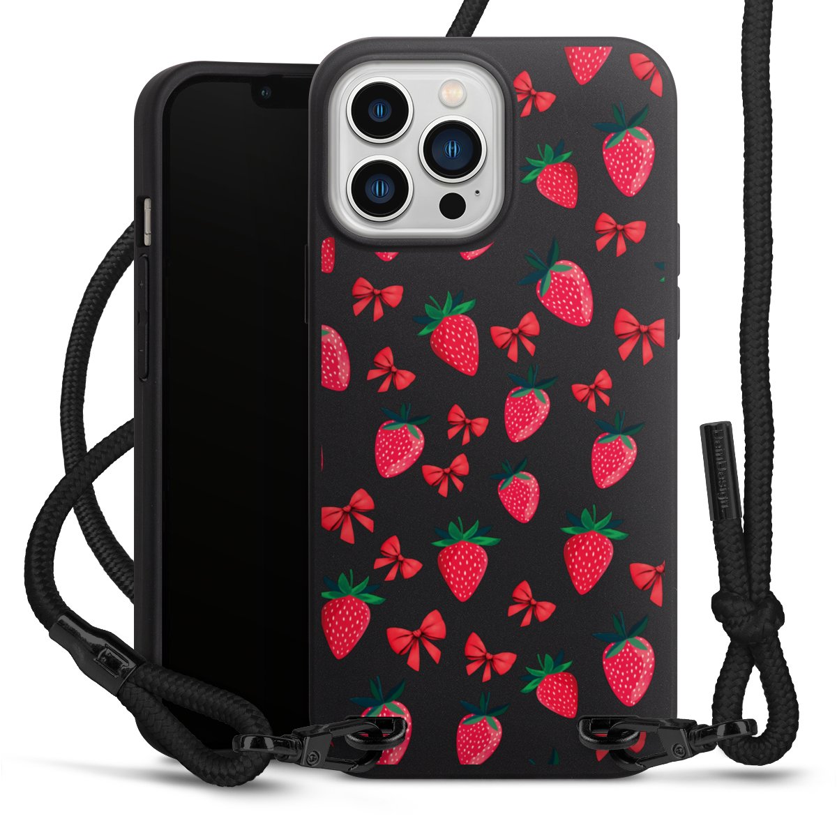 We use the solid direct print process for this phone case, which is why the print area only covers the back and the edge remains unprinted. The case to wear around your neck can be ordered unprinted, fully printed, or partially printed. For your design, either choose one of our exclusive shop motifs or get creative and create your own design, for example with photos and overlays. Design your own personal trend accessory and make an individual statement on the streets!
