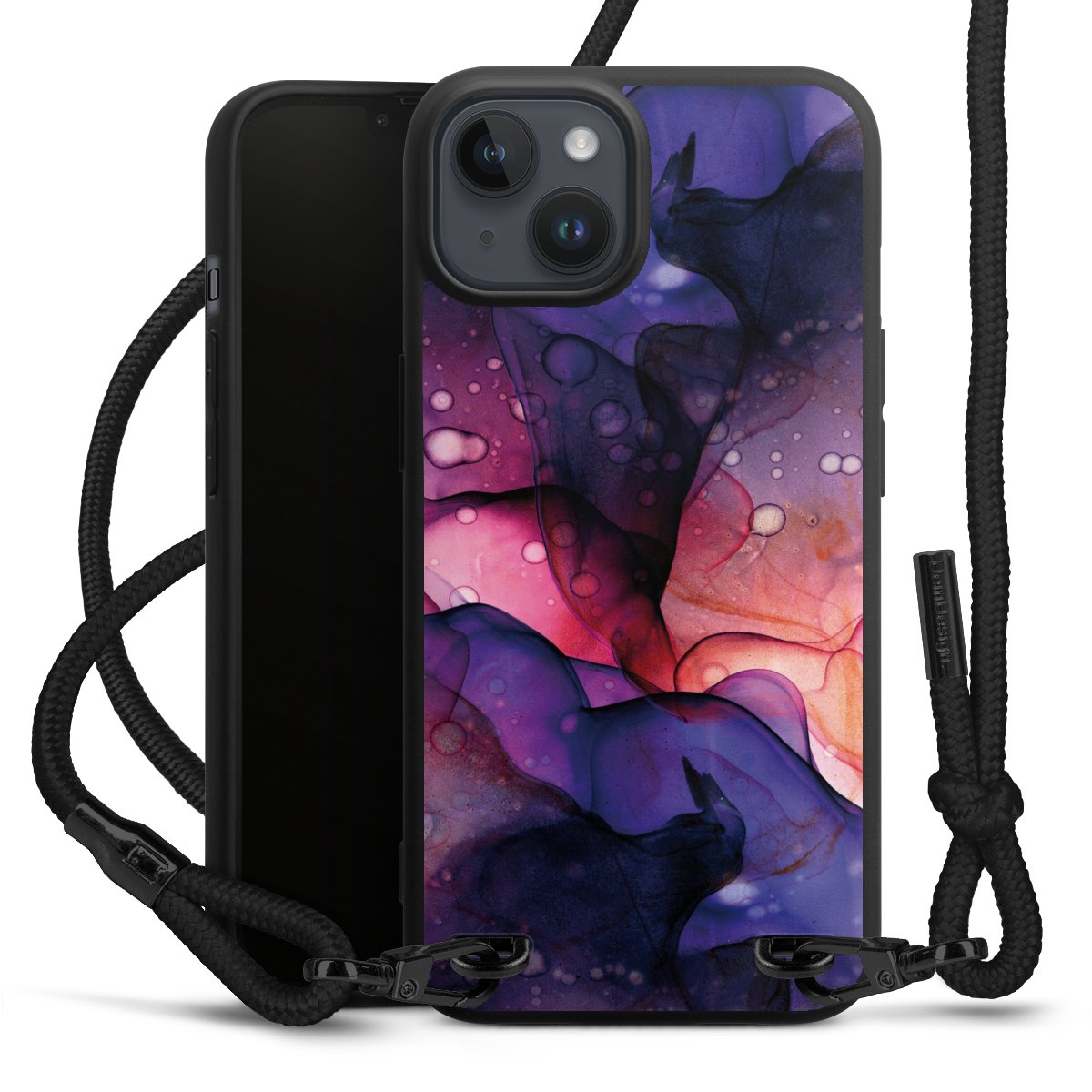 We use the solid direct print process for this phone case, which is why the print area only covers the back and the edge remains unprinted. The case to wear around your neck can be ordered unprinted, fully printed, or partially printed. For your design, either choose one of our exclusive shop motifs or get creative and create your own design, for example with photos and overlays. Design your own personal trend accessory and make an individual statement on the streets!