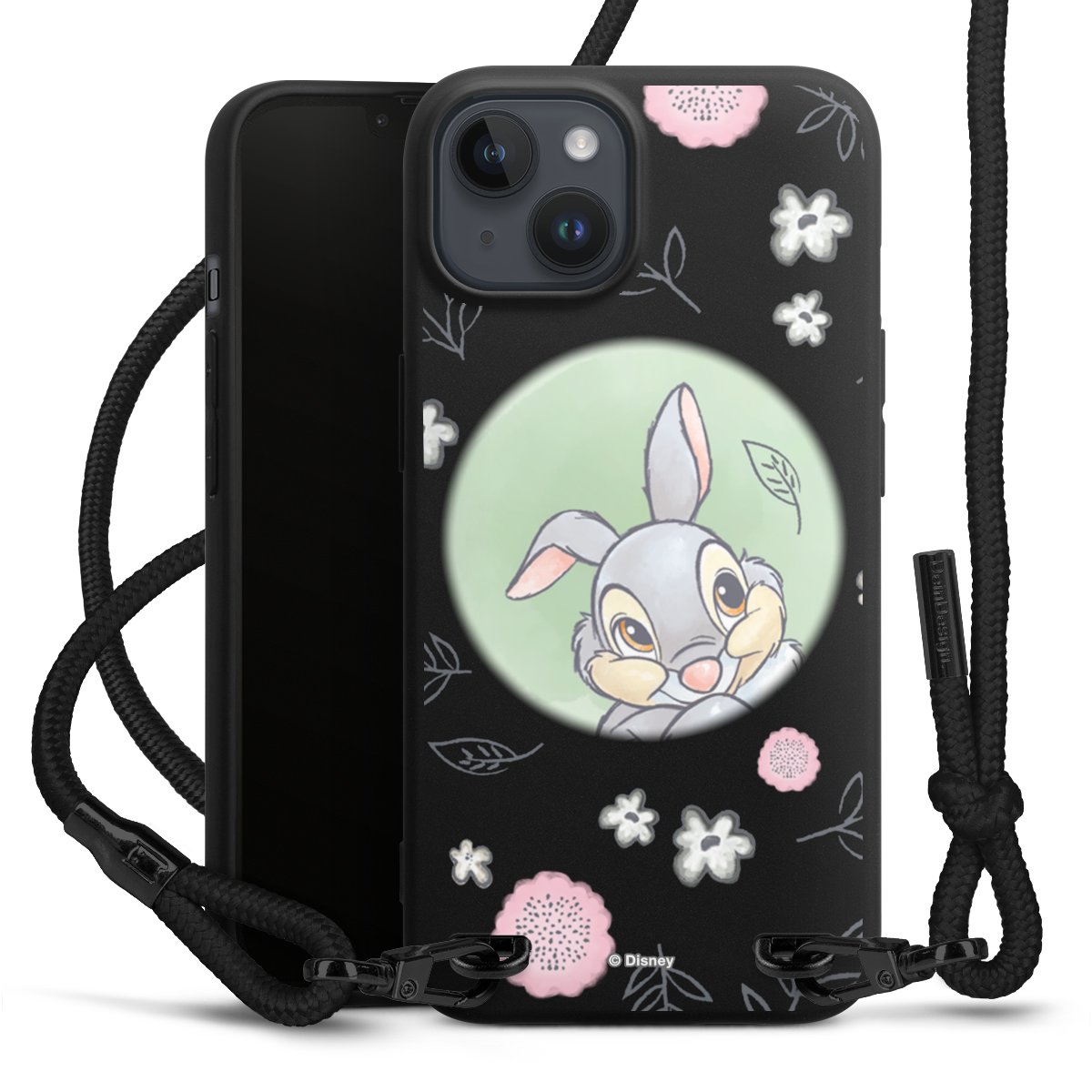The matt black silicone case is made of flexible TPU (thermoplastic polyurethane) and offers robust protection. The durable, unbreakable material makes the cover flexible and dimensionally stable at the same time. The matte surface makes your design stand out more and is less susceptible to fingerprints and dirt. The stylish trend accessory fits comfortably in the hand and is perfectly complemented by the fabric (polyester) mobile phone strap. The braided fabric strap is approx. 1.70 metres long with a diameter of approx. 0.5 cm. Due to the special knotting technique, the length of the strap can be adjusted by simply pulling it, so that you can adapt it individually to your wishes. The practical case to wear around your neck is available with the fabric strap in black. As a little icing on the cake, we have provided the strap with a chic metal fastener in matt black. The strap is securely fastened to the case with loops made of high-quality genuine leather and press studs. The ends of the fabric strap are covered with metallic end caps and thus protected from fraying.