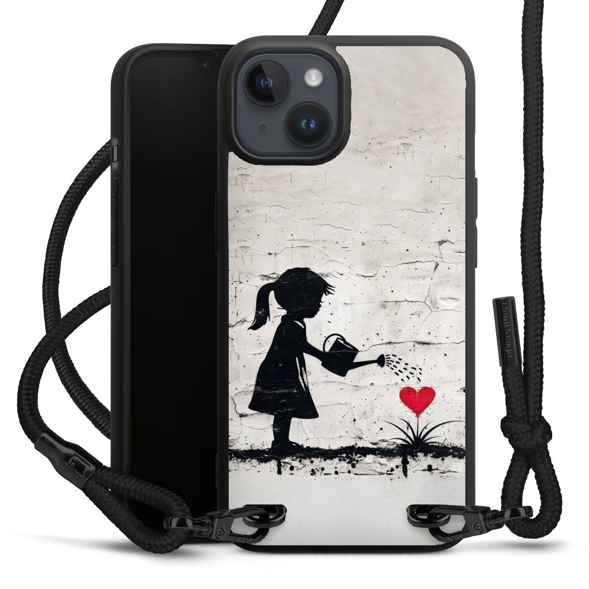 We use the solid direct print process for this phone case, which is why the print area only covers the back and the edge remains unprinted. The case to wear around your neck can be ordered unprinted, fully printed, or partially printed. For your design, either choose one of our exclusive shop motifs or get creative and create your own design, for example with photos and overlays. Design your own personal trend accessory and make an individual statement on the streets!