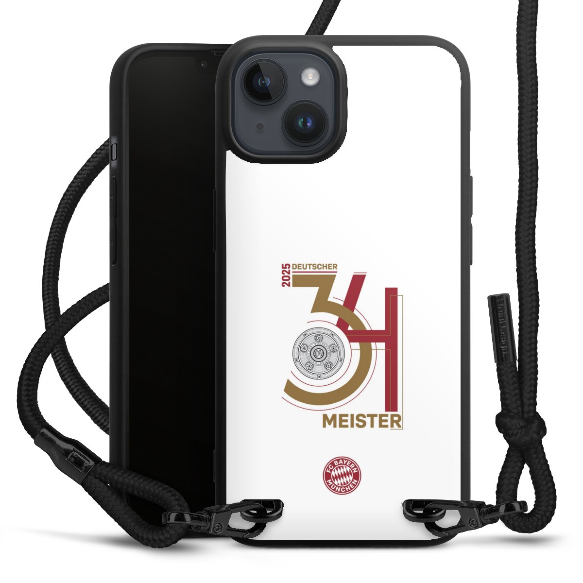 Pure Black: Phone case, fabric strap and metal details in stylish matt black.