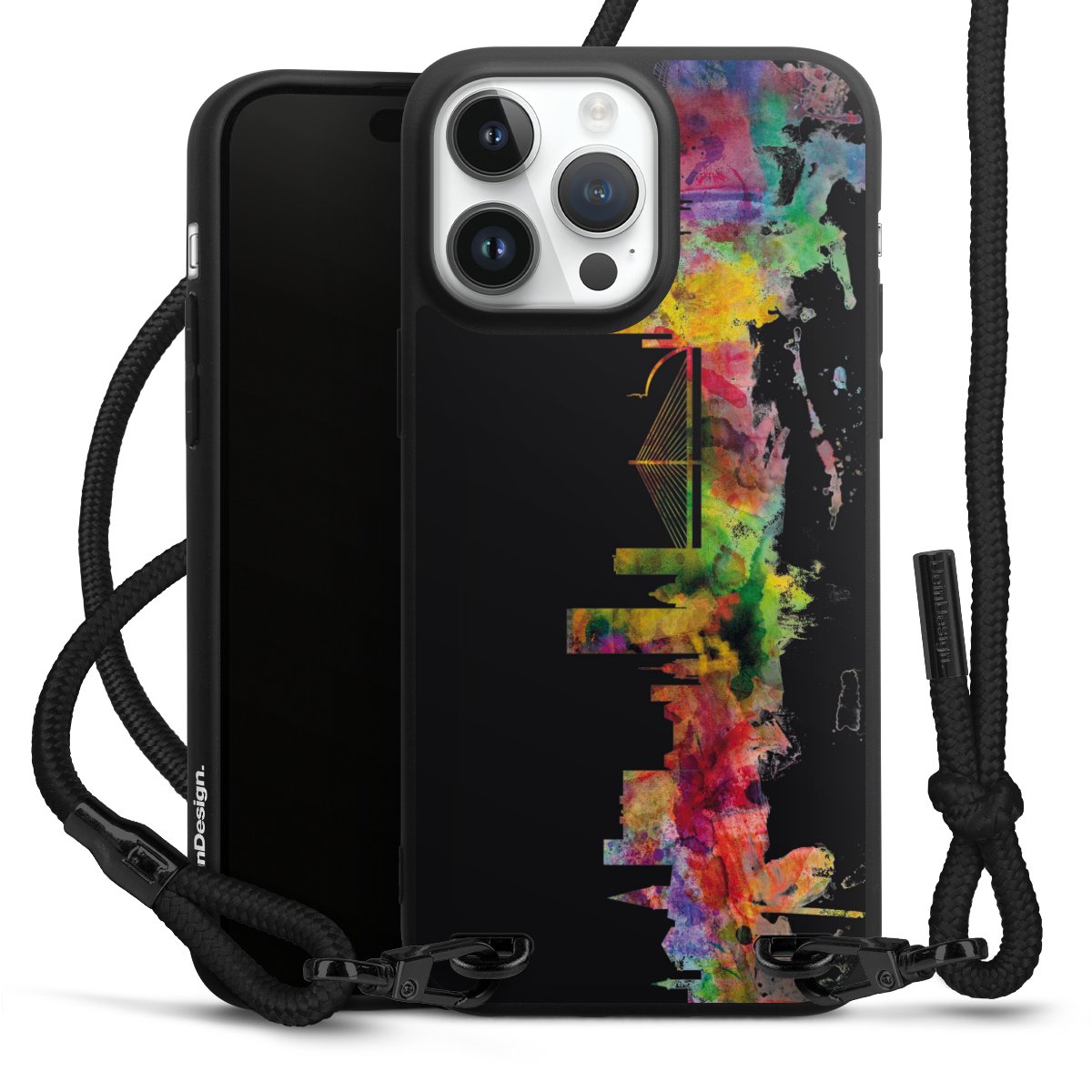 We use the solid direct print process for this phone case, which is why the print area only covers the back and the edge remains unprinted. The case to wear around your neck can be ordered unprinted, fully printed, or partially printed. For your design, either choose one of our exclusive shop motifs or get creative and create your own design, for example with photos and overlays. Design your own personal trend accessory and make an individual statement on the streets!