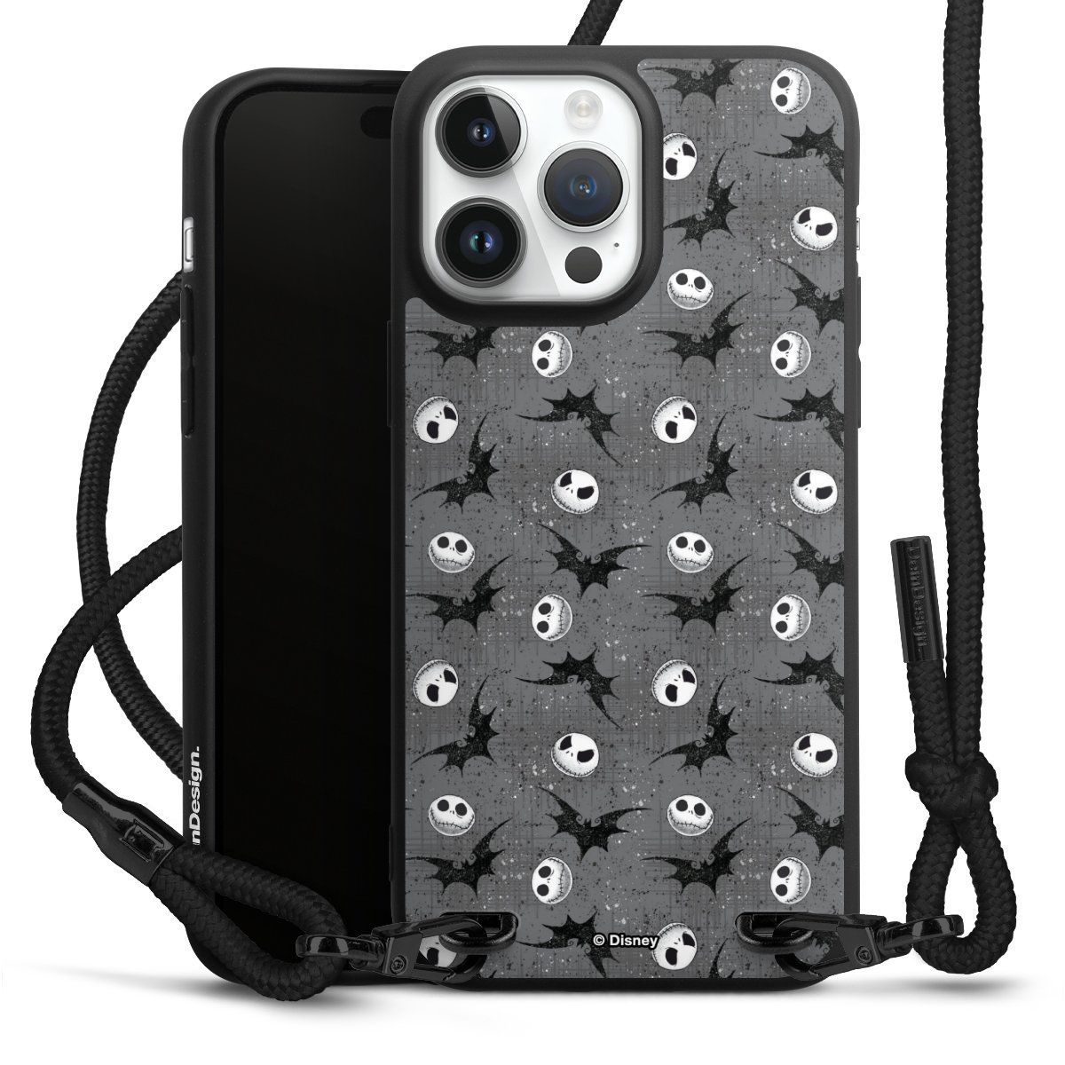 Pure Black: Phone case, fabric strap and metal details in stylish matt black.