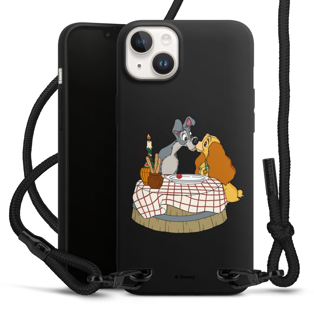 The matt black silicone case is made of flexible TPU (thermoplastic polyurethane) and offers robust protection. The durable, unbreakable material makes the cover flexible and dimensionally stable at the same time. The matte surface makes your design stand out more and is less susceptible to fingerprints and dirt. The stylish trend accessory fits comfortably in the hand and is perfectly complemented by the fabric (polyester) mobile phone strap. The braided fabric strap is approx. 1.70 metres long with a diameter of approx. 0.5 cm. Due to the special knotting technique, the length of the strap can be adjusted by simply pulling it, so that you can adapt it individually to your wishes. The practical case to wear around your neck is available with the fabric strap in black. As a little icing on the cake, we have provided the strap with a chic metal fastener in matt black. The strap is securely fastened to the case with loops made of high-quality genuine leather and press studs. The ends of the fabric strap are covered with metallic end caps and thus protected from fraying.