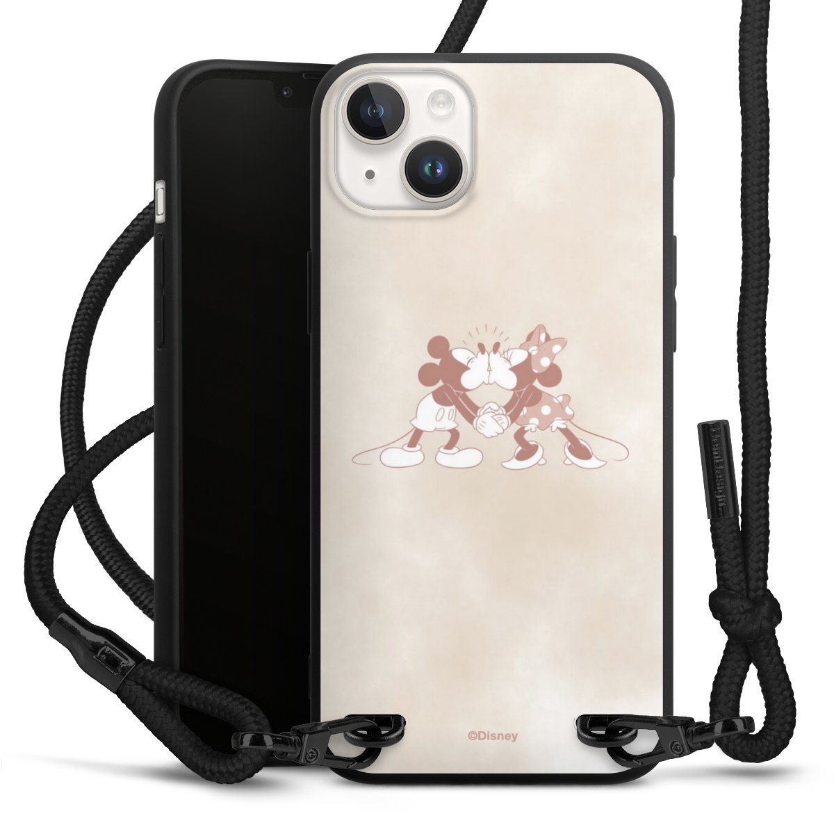 The matt black silicone case is made of flexible TPU (thermoplastic polyurethane) and offers robust protection. The durable, unbreakable material makes the cover flexible and dimensionally stable at the same time. The matte surface makes your design stand out more and is less susceptible to fingerprints and dirt. The stylish trend accessory fits comfortably in the hand and is perfectly complemented by the fabric (polyester) mobile phone strap. The braided fabric strap is approx. 1.70 metres long with a diameter of approx. 0.5 cm. Due to the special knotting technique, the length of the strap can be adjusted by simply pulling it, so that you can adapt it individually to your wishes. The practical case to wear around your neck is available with the fabric strap in black. As a little icing on the cake, we have provided the strap with a chic metal fastener in matt black. The strap is securely fastened to the case with loops made of high-quality genuine leather and press studs. The ends of the fabric strap are covered with metallic end caps and thus protected from fraying.
