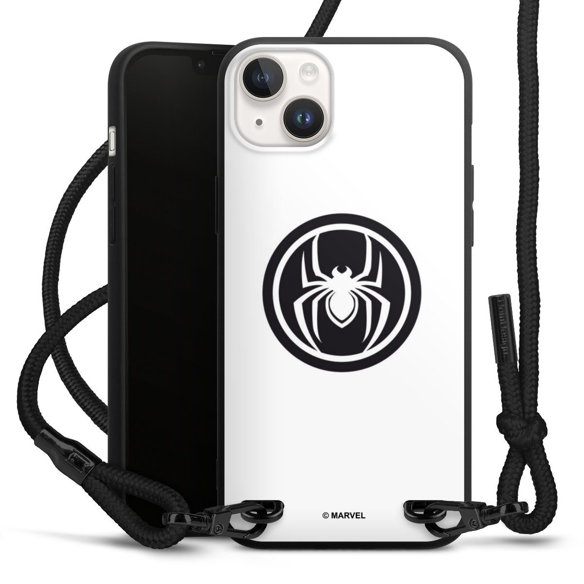 The matt black silicone case is made of flexible TPU (thermoplastic polyurethane) and offers robust protection. The durable, unbreakable material makes the cover flexible and dimensionally stable at the same time. The matte surface makes your design stand out more and is less susceptible to fingerprints and dirt. The stylish trend accessory fits comfortably in the hand and is perfectly complemented by the fabric (polyester) mobile phone strap. The braided fabric strap is approx. 1.70 metres long with a diameter of approx. 0.5 cm. Due to the special knotting technique, the length of the strap can be adjusted by simply pulling it, so that you can adapt it individually to your wishes. The practical case to wear around your neck is available with the fabric strap in black. As a little icing on the cake, we have provided the strap with a chic metal fastener in matt black. The strap is securely fastened to the case with loops made of high-quality genuine leather and press studs. The ends of the fabric strap are covered with metallic end caps and thus protected from fraying.