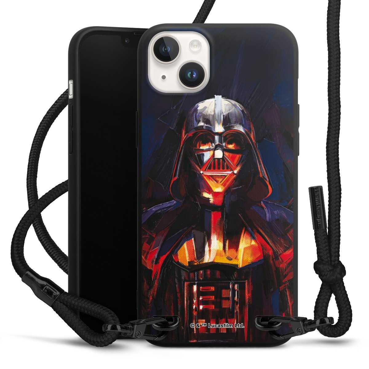 Pure Black: Phone case, fabric strap and metal details in stylish matt black.