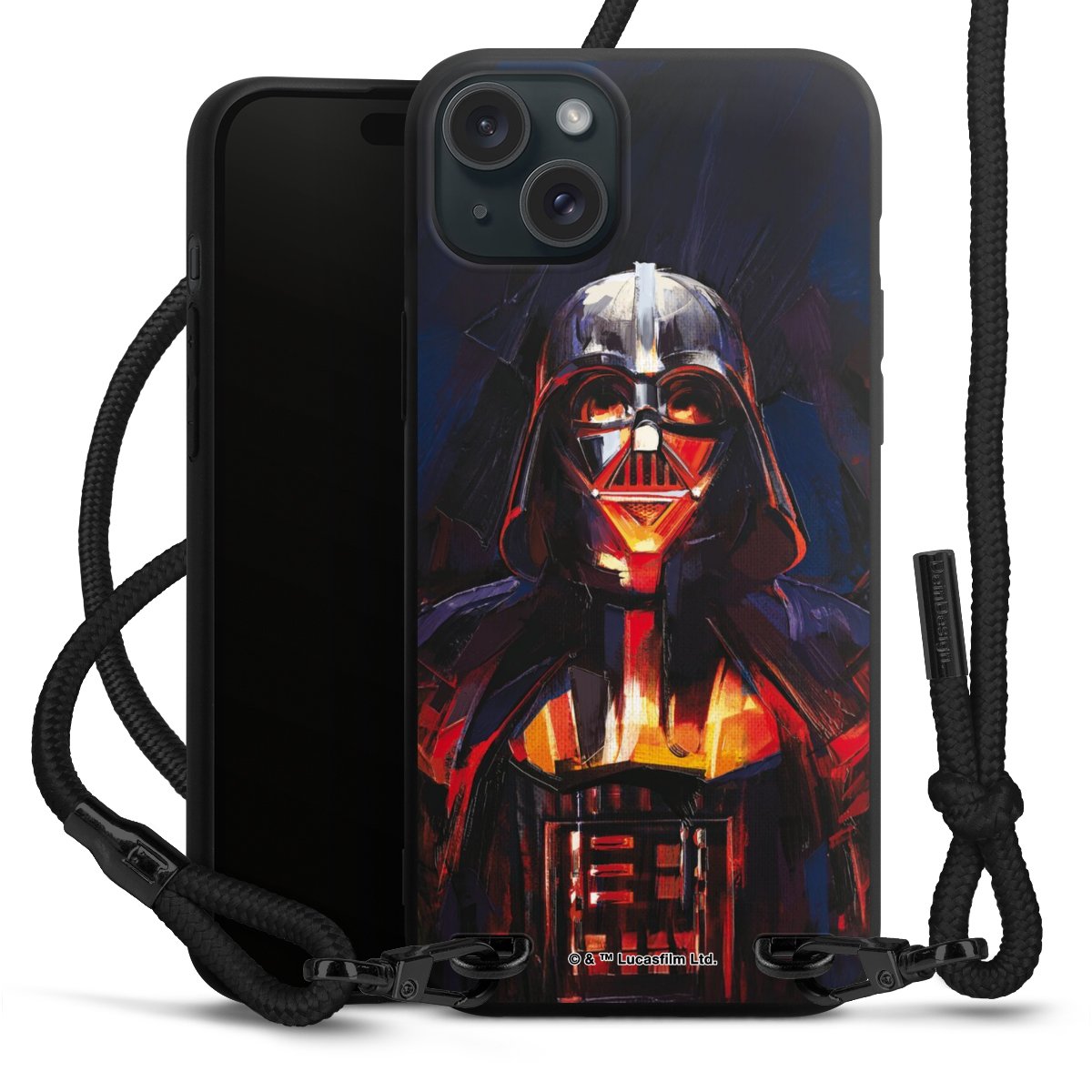Pure Black: Phone case, fabric strap and metal details in stylish matt black.