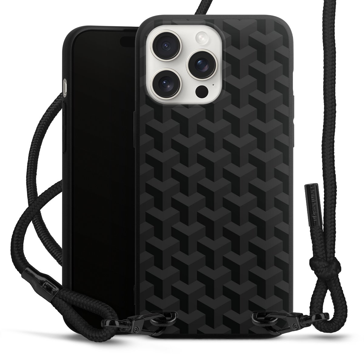 Pure Black: Phone case, fabric strap and metal details in stylish matt black.