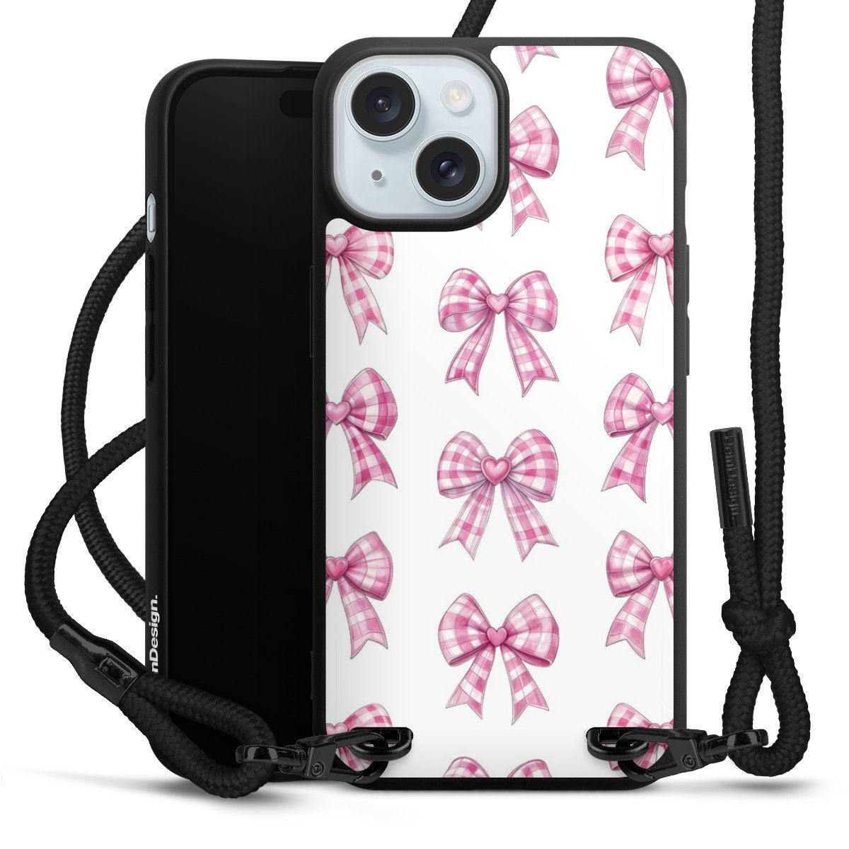 Pure Black: Phone case, fabric strap and metal details in stylish matt black.