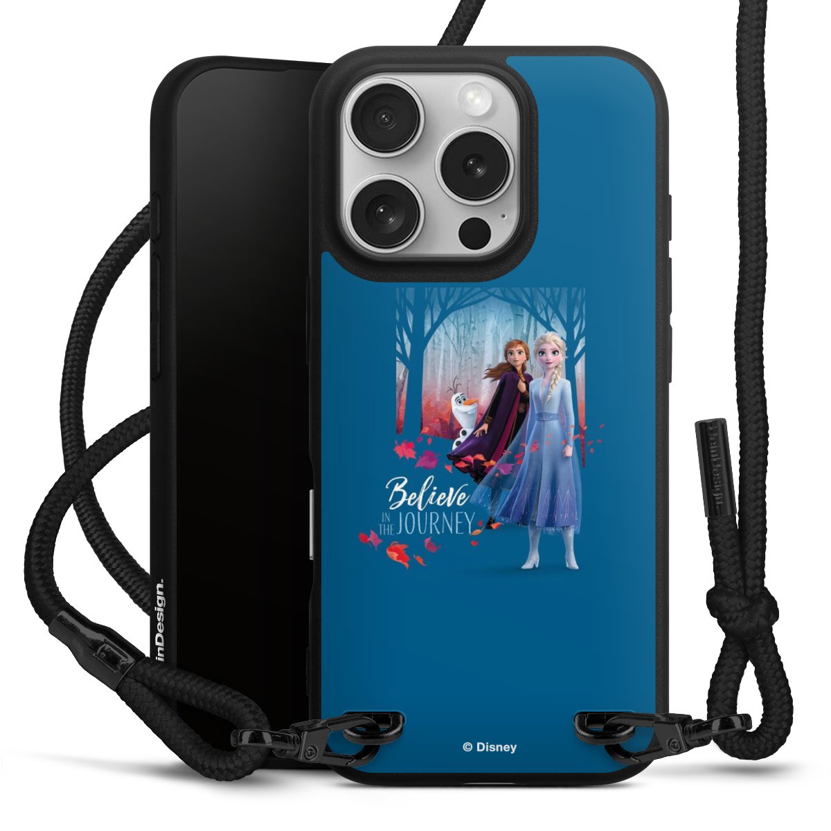 Pure Black: Phone case, fabric strap and metal details in stylish matt black.
