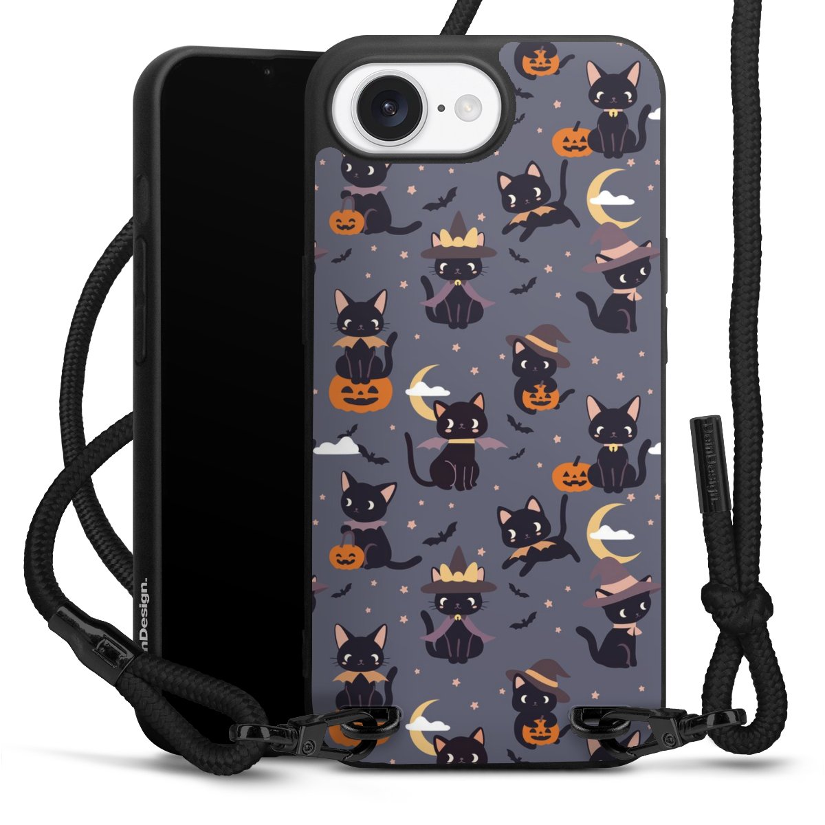 Pure Black: Phone case, fabric strap and metal details in stylish matt black.